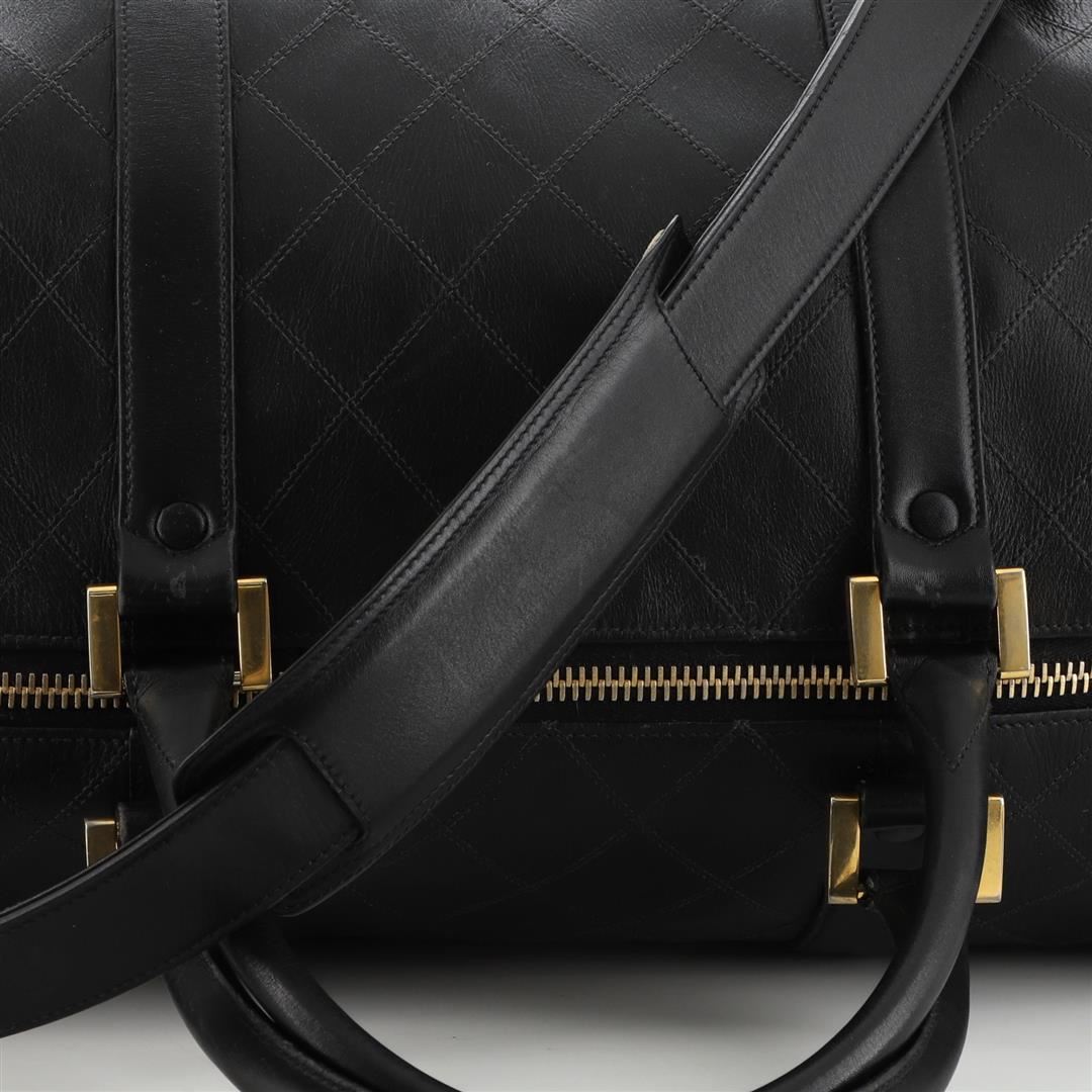 One Chanel Vintage Diamond Stitch Boston Bag Quilted Lambskin Large. Item is sold AS-IS. All available information is listed in the description and shown in the photo. Chanel Vintage Diamond Stitch Boston Bag Quilted Lambskin Large. Creasing, moderate wear and scuffs on exterior, handles and strap, heavy wear on side edges, small nicks front near opening. Minor wear in interior, scratches and discoloration on hardware. 78848