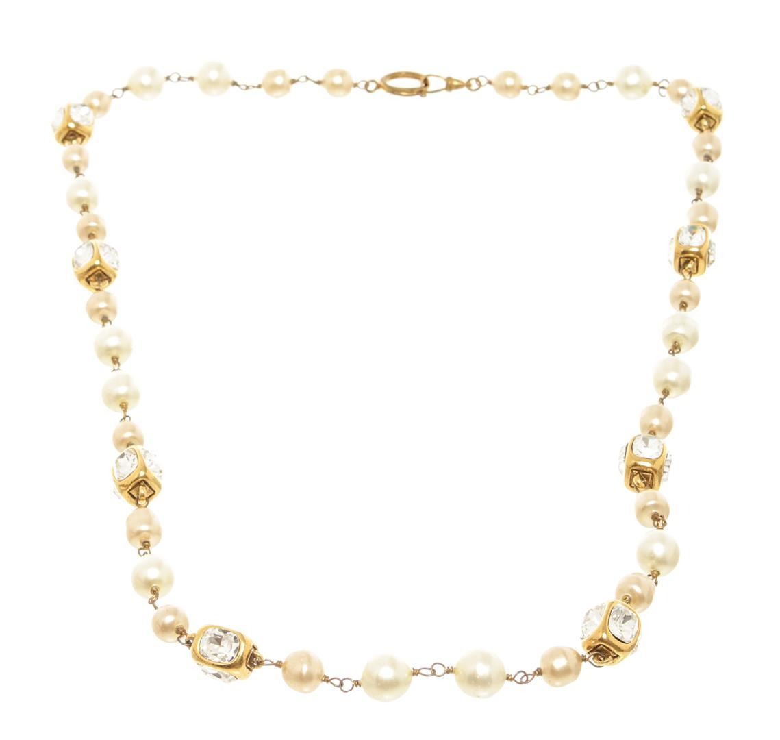 One Chanel White Black Pearl Necklace. Item is sold AS-IS. All available information is listed in the description and shown in the photo. Chanel White Black Pearl Necklace