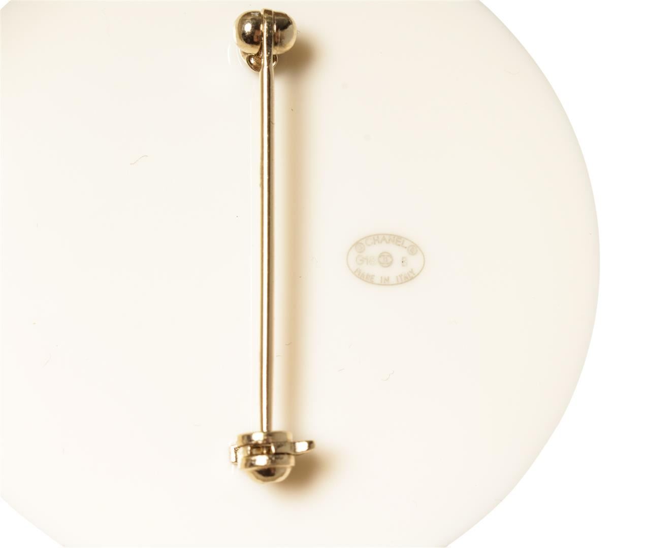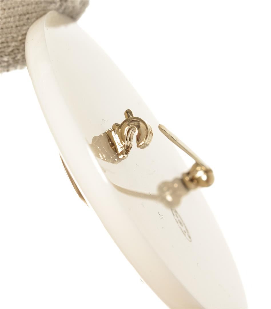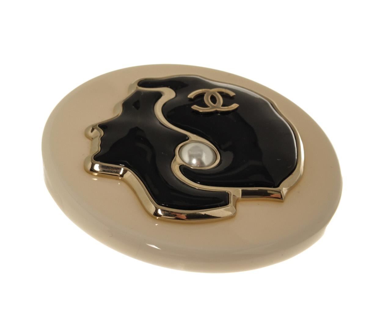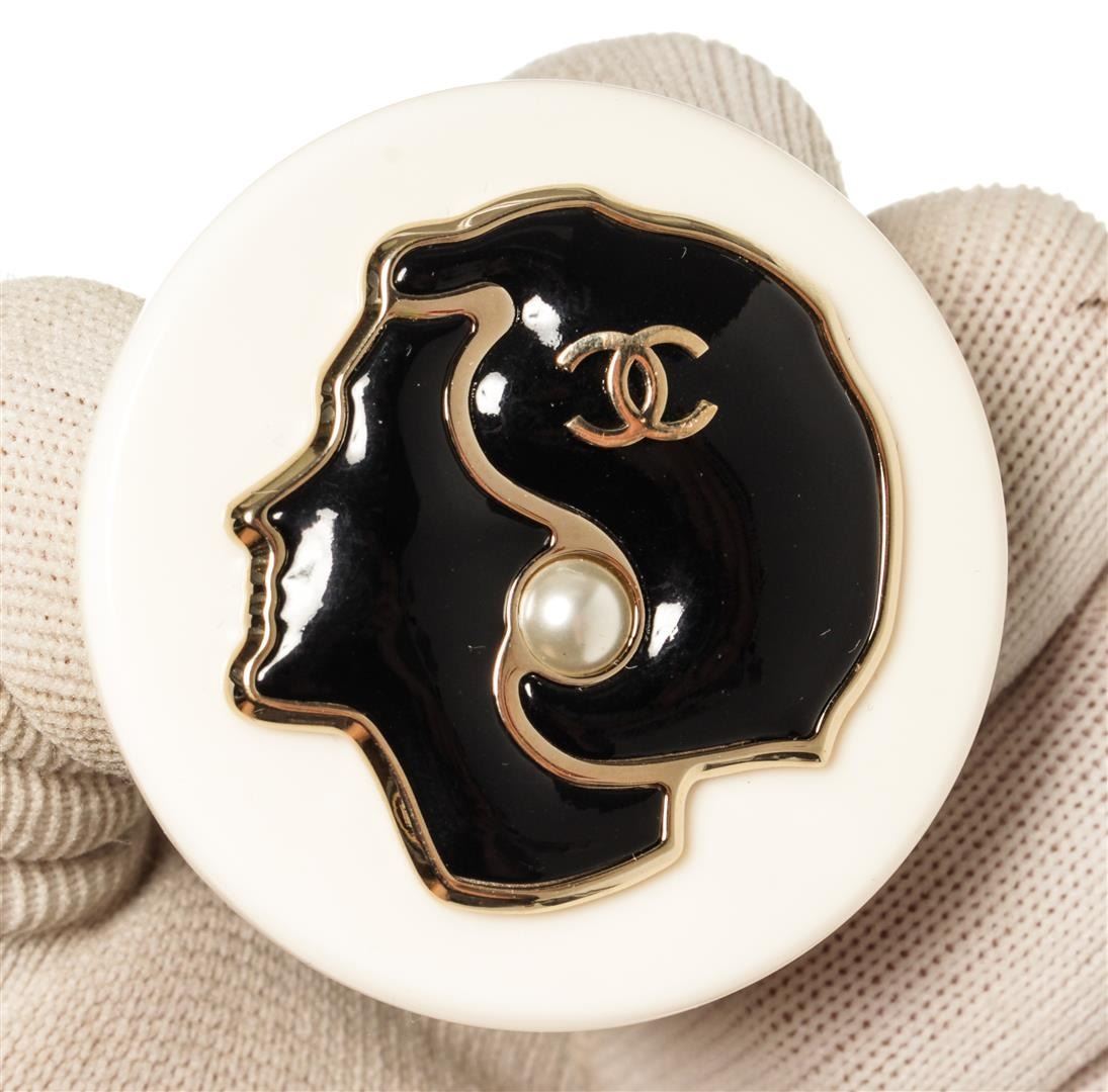 One Chanel White Faux Pearl Mademoiselle Profile Pin Brooch. Item is sold AS-IS. All available information is listed in the description and shown in the photo. Chanel White Faux Pearl Mademoiselle Profile Pin Brooch and made in Italy.