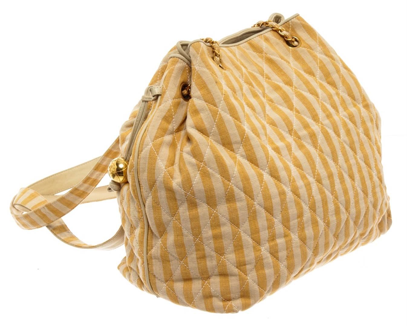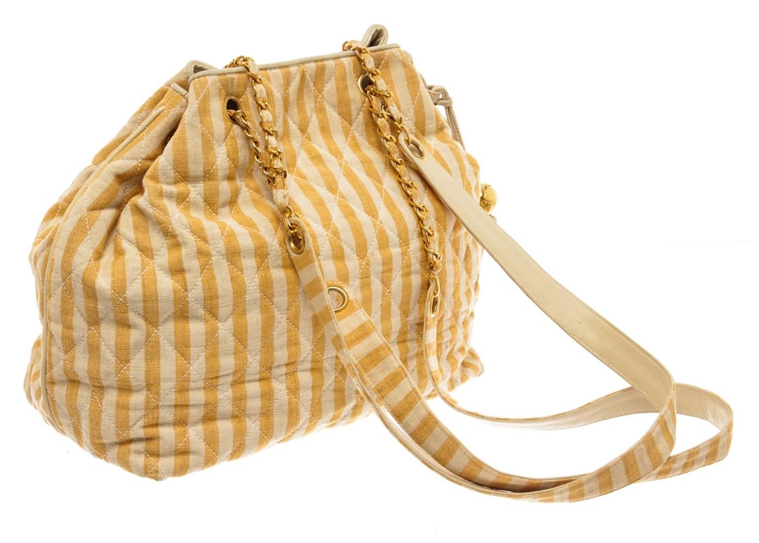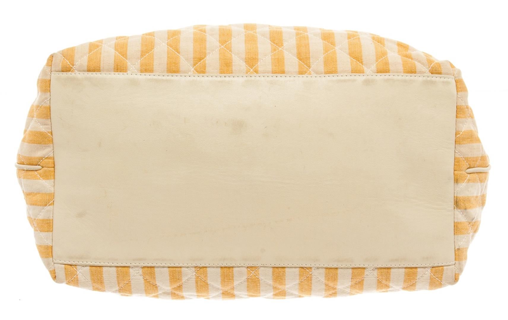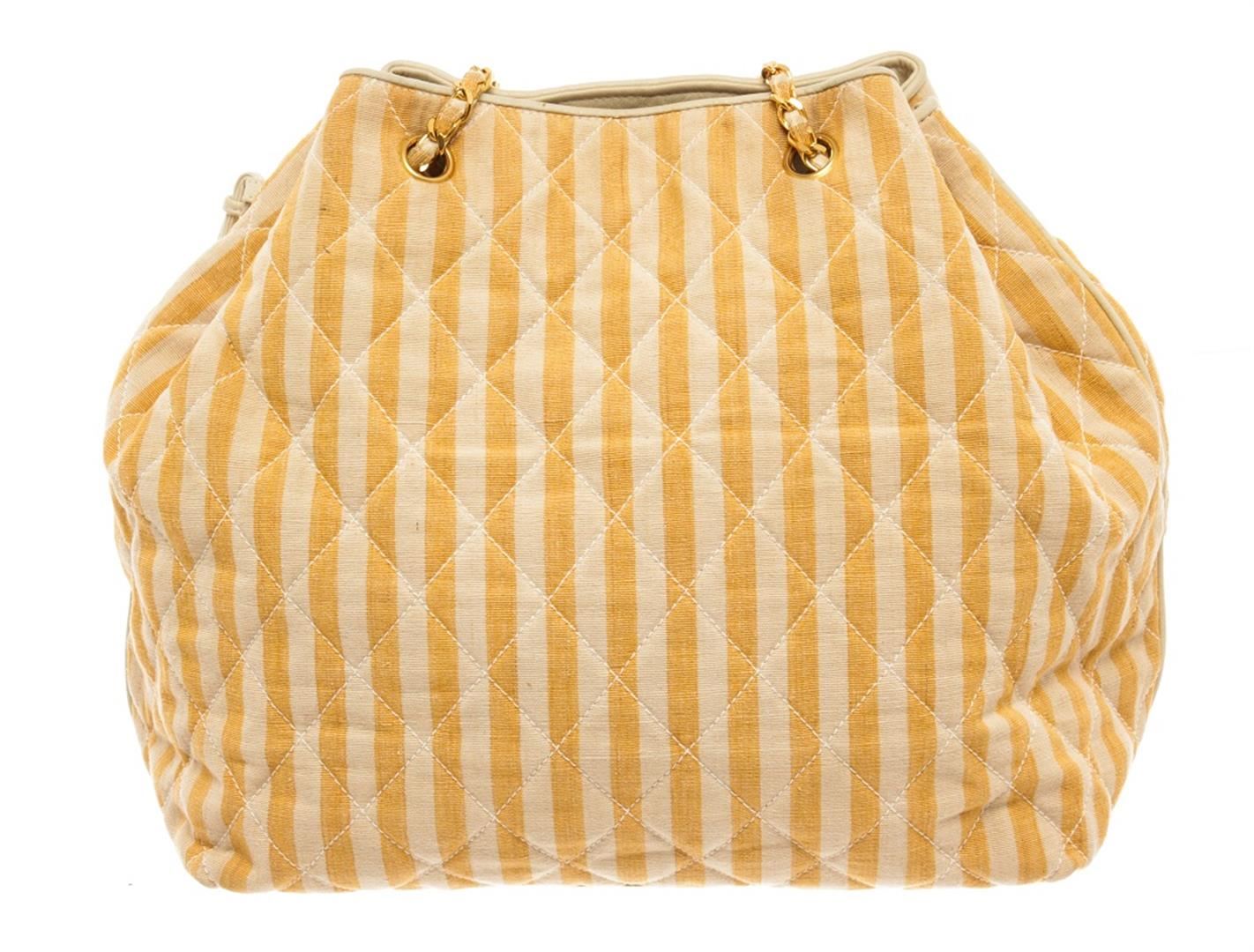 Chanel Yellow Lambskin Leather Matelasse Tote Bag. All available information is listed in the description and shown in the photos. Chanel Yellow Lambskin Leather Matelasse Tote Bag with gold-tone hardware, dual flat shoulder straps with chain, leather trim, single interior zip pocket. Height: 12.40" Width: 12.20" Depth: 6.49", Handle Drop: 17.32" / 31.5 x 31 x 16.5 Cm