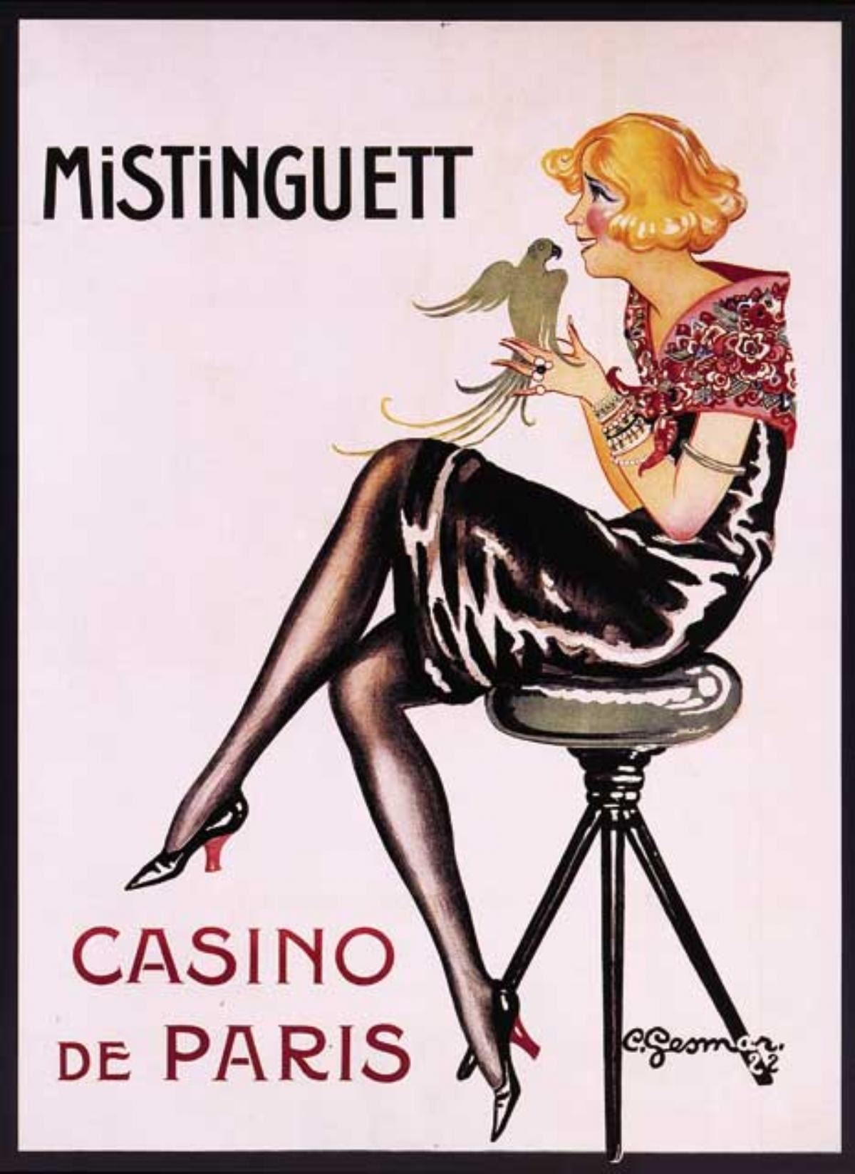 Artist: Charles Gesmar - Title: Mistinguett Casino Paris - Medium: Fine Art Reproduction Giclee on Canvas - Image Size: Approximately 32 inches x 23.25 inches - Framed: Unframed on Unstretched Canvas - Charles Ges(i)mar, simply known as Gesmar, was one of the greatest designers of costumes and posters during the golden age of the Paris music hall during the Jazz Age and was primarily renowned for his work for the great Parisian star Mistinguett