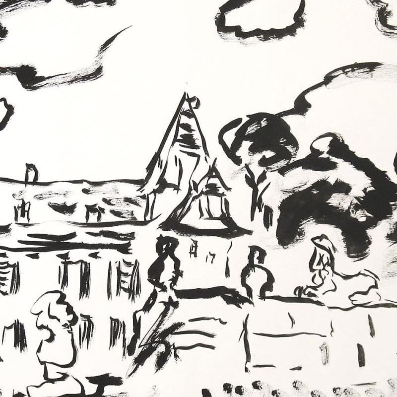 "Chateau Olivier, Bordeaux - France" is an original Pen & Ink on Paper by Wayne Ensrud. The piece is hand signed by the artist and comes with a Certificate of Authenticity. Measures approximately 19" x 26".