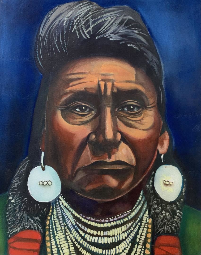 A pastel & watercolor portrait of the leader of the fierce Nez Perce tribes and later an advocate for his people's rights . 24x18" on deckled fine art paper, by Anonymous