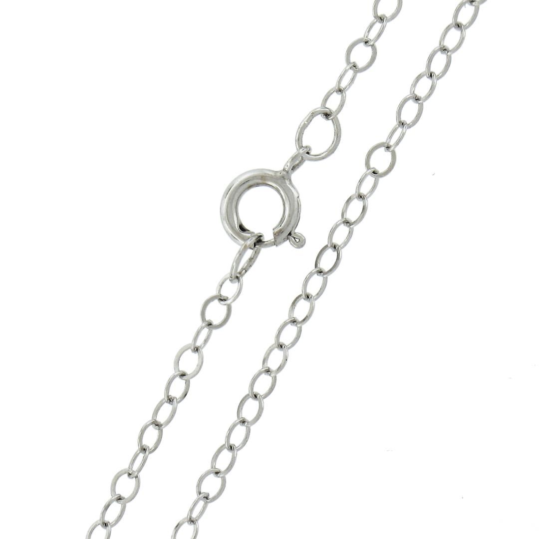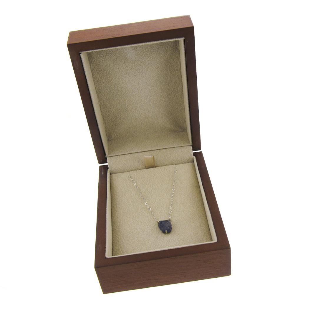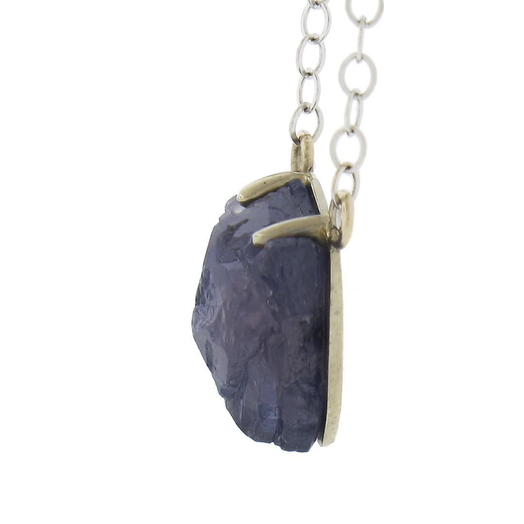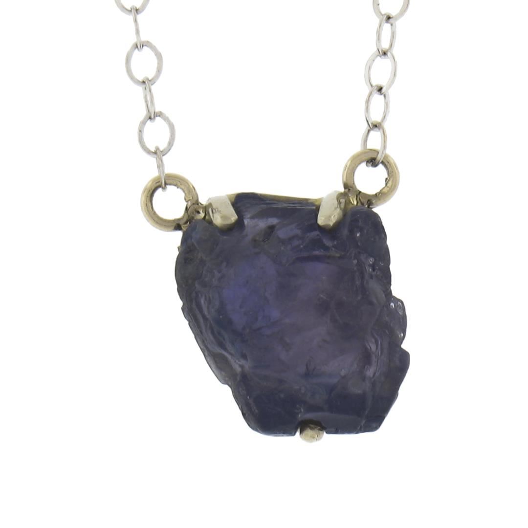 A solid 14k white gold pendant necklace by Chinchar Maloney, featuring 1 uncut natural genuine Iolite or tanzanite (purple - 9.3x8mm). 18 inch cable link chain, 1.91 grams total weight, pendant measures 9.3x8mm.