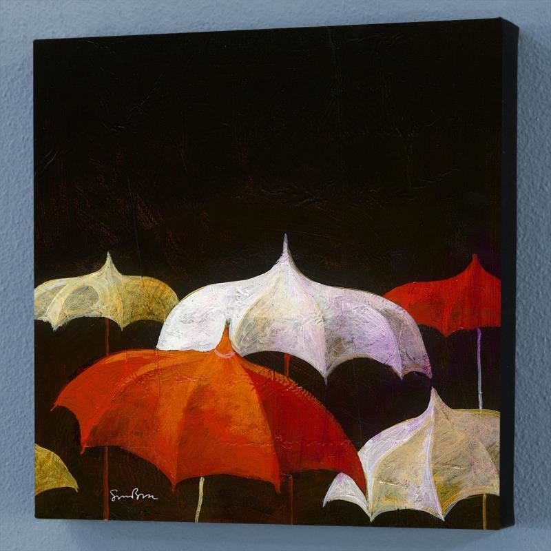 "Chit Chat" is a numbered limited edition giclee on canvas by Simon Bull bearing the artist's authorized signature. This piece comes gallery wrapped and includes a Letter of Authenticity. Measures approx. 12" x 12" x 1.5" (image).