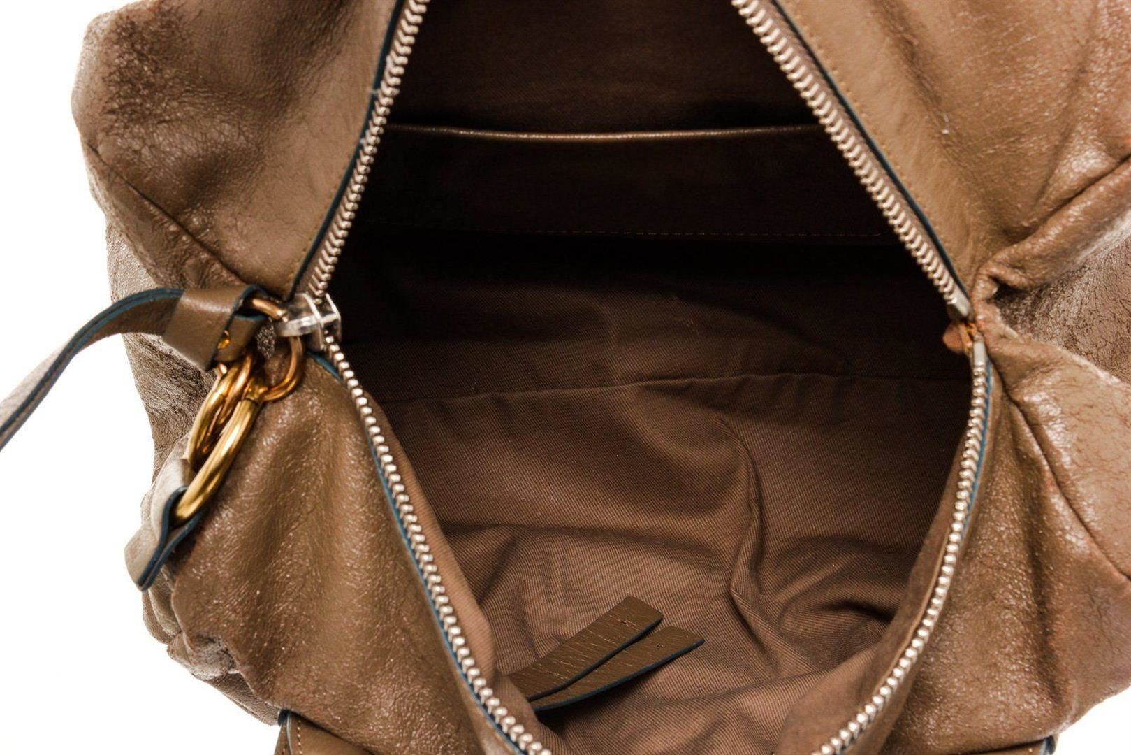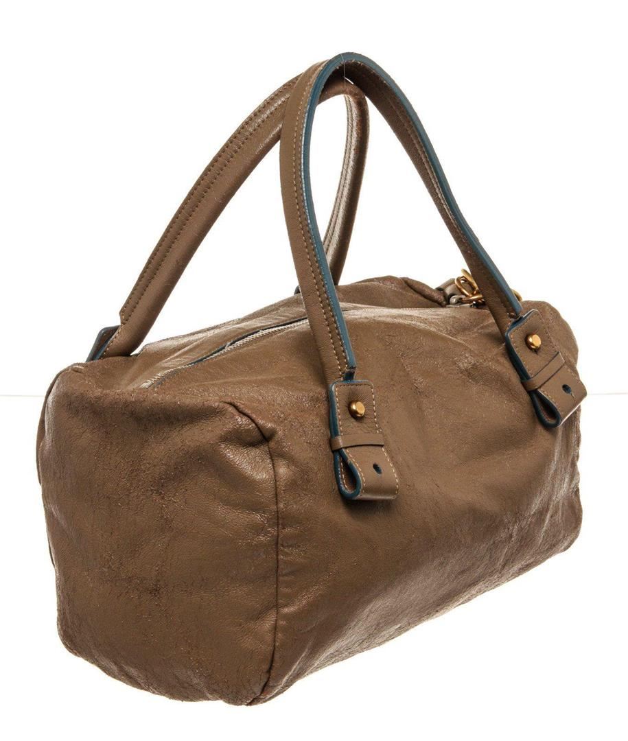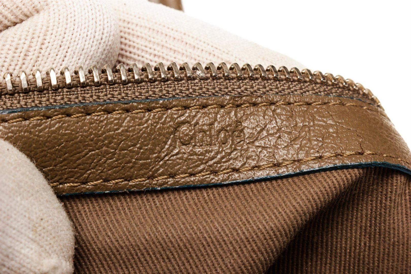 Chloe Brown Gold Leather Logo Eclipse Bost Travel Bag with material leather, gold-tone hardware, interior slip pocket, lining leather, shoulder strap and zipper closure.