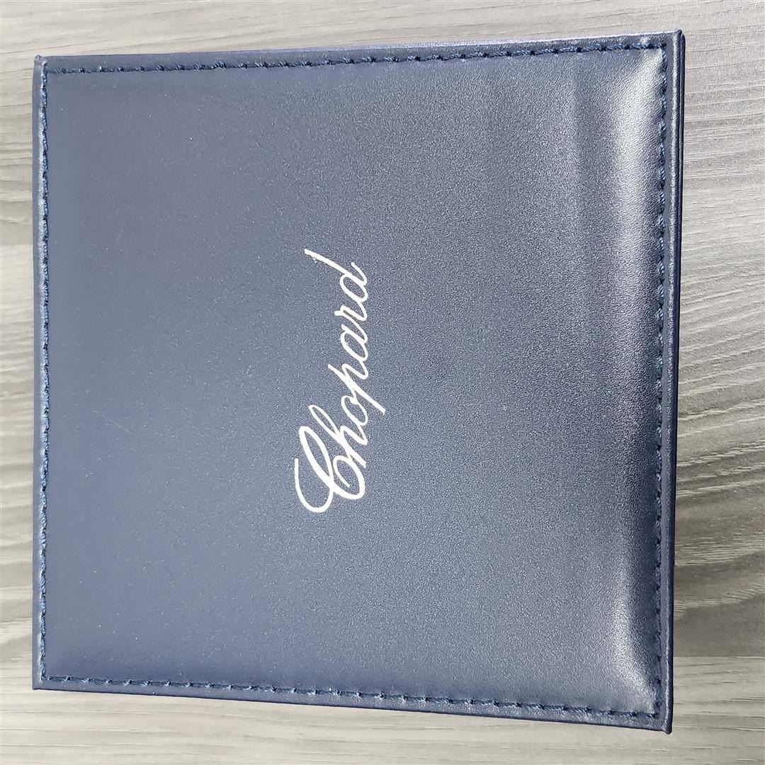 One Chopard 1000 Miglia GMT Chonometer Wristwatch. Stainless steel case with a stainless steel bracelet. Fixed stainless steel bezel with 24 hour markings. Black dial with luminous hands and index hour markers. Minute markers. Tachymeter around the outer rim. Dial Type: Analog. Luminescent hands and markers. Date displays at the 3 o'clock position. Chronograph - three sub-dials displaying: 60 second, 30 minute and 12 hour (dual time zone). Automatic movement. Scratch resistant sapphire crystal. Pull / push crown. Skeleton case back. Case diameter: 42.5 mm. Case thickness: 14.8 mm. Round case shape. Band width: 20 mm. Water resistant at 50 meters / 165 feet. Functions: hours/ minutes/ seconds/ date/ chronograph. Additional Info: powers automatically with the movement of your arm. Sport watch style. Watch label: Swiss Made. Chopard Mille Miglia GMT Steel Men's Watch 15/8992.