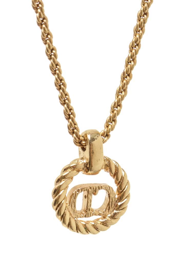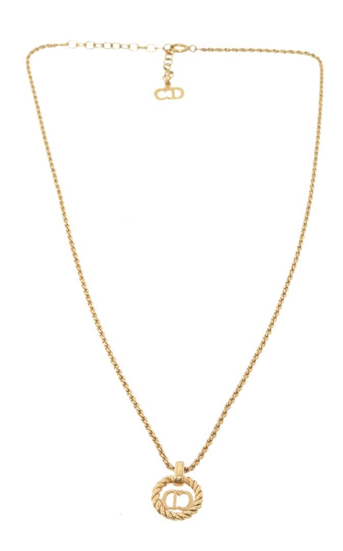 Christian Dior Gold-tone CD Pendant Charm Necklace. All available information is listed in the description and shown in the photos. Christian Dior Gold-tone CD Pendant Charm Necklace with christian dior cd pendant charm necklace features gold-tone hardware, pendant with cd logo at the center circled with braided accent and a spring ring closure.