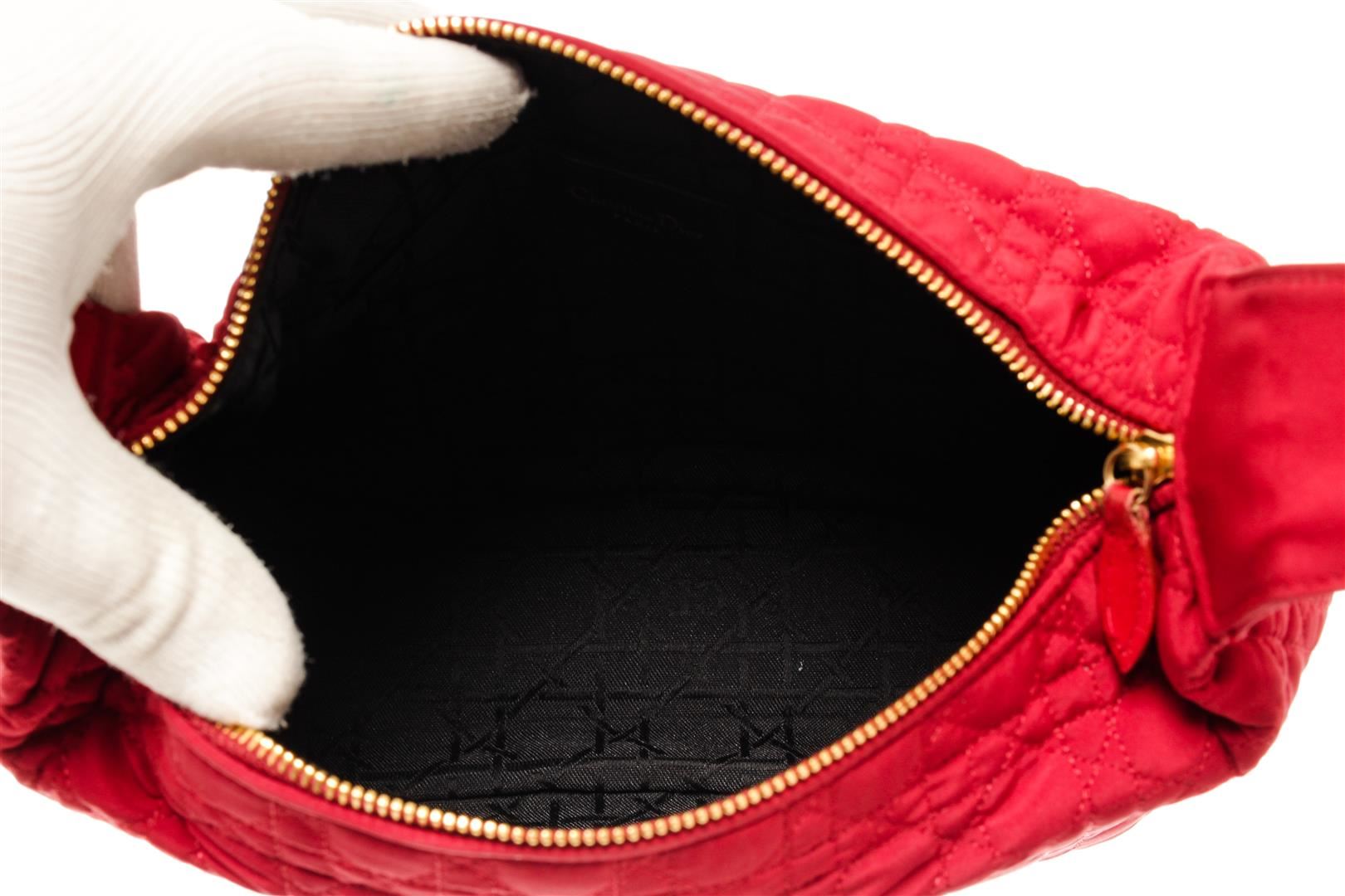 One Christian Dior Red Trotteur Small Pouch. Item is sold AS-IS. All available information is listed in the description and shown in the photo. Christian Dior Red Trotteur Small Pouch with gold-tone hardware, interior slip pockets, black canvas interior, and a gold zipper closure.