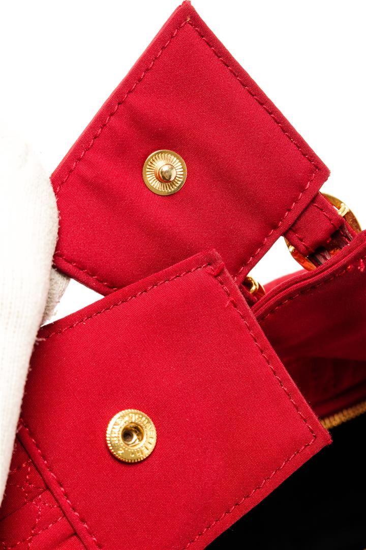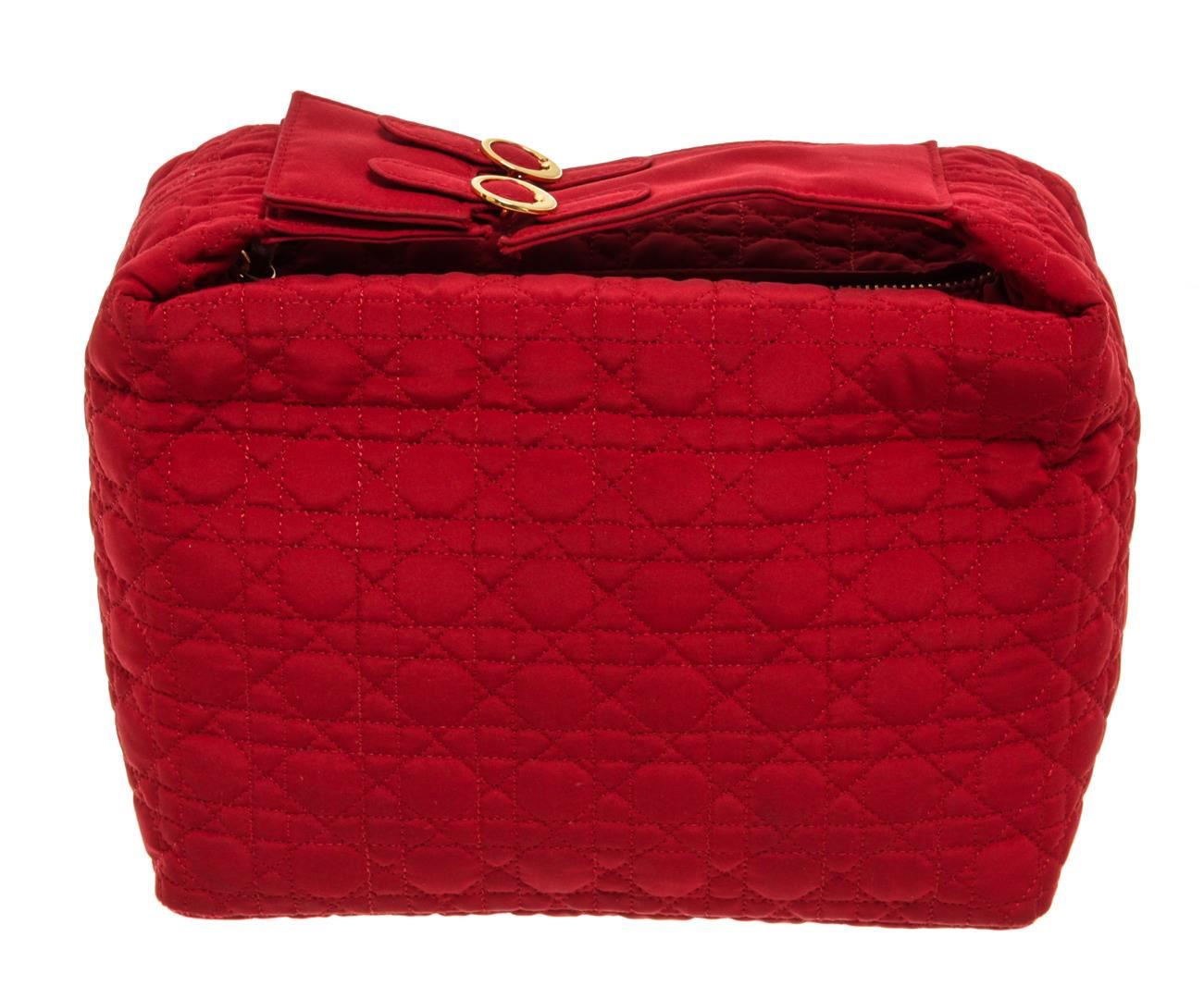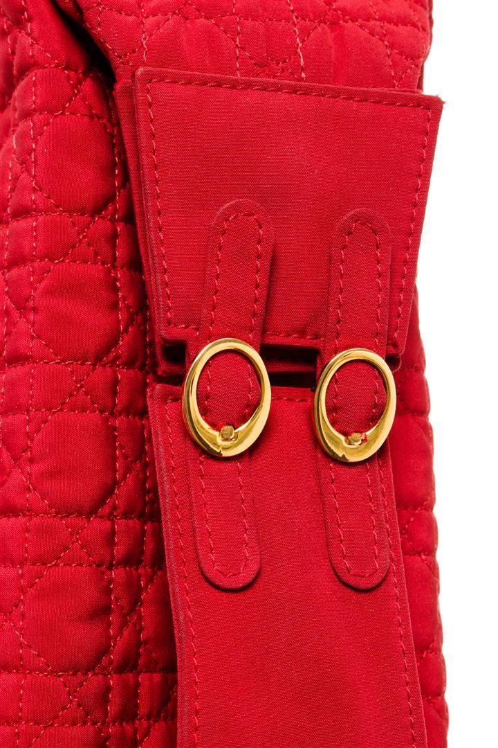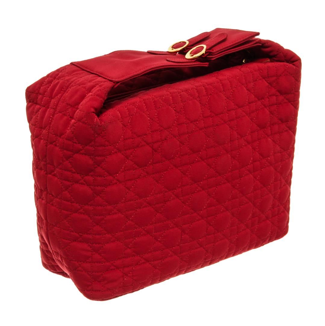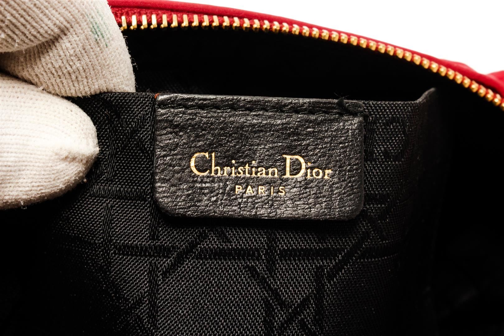 One Christian Dior Red Trotteur Small Pouch. Item is sold AS-IS. All available information is listed in the description and shown in the photo. Christian Dior Red Trotteur Small Pouch with gold-tone hardware, interior slip pockets, black canvas interior, and a gold zipper closure.