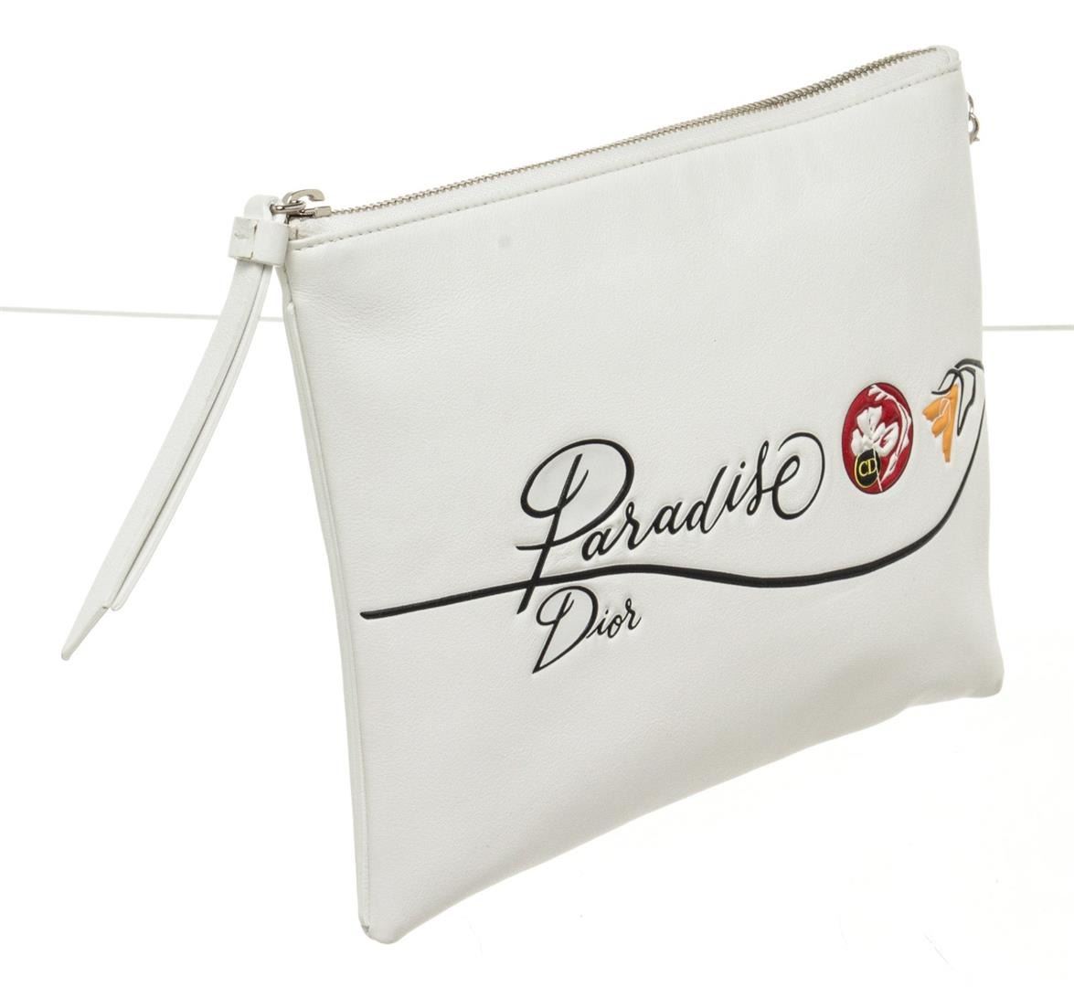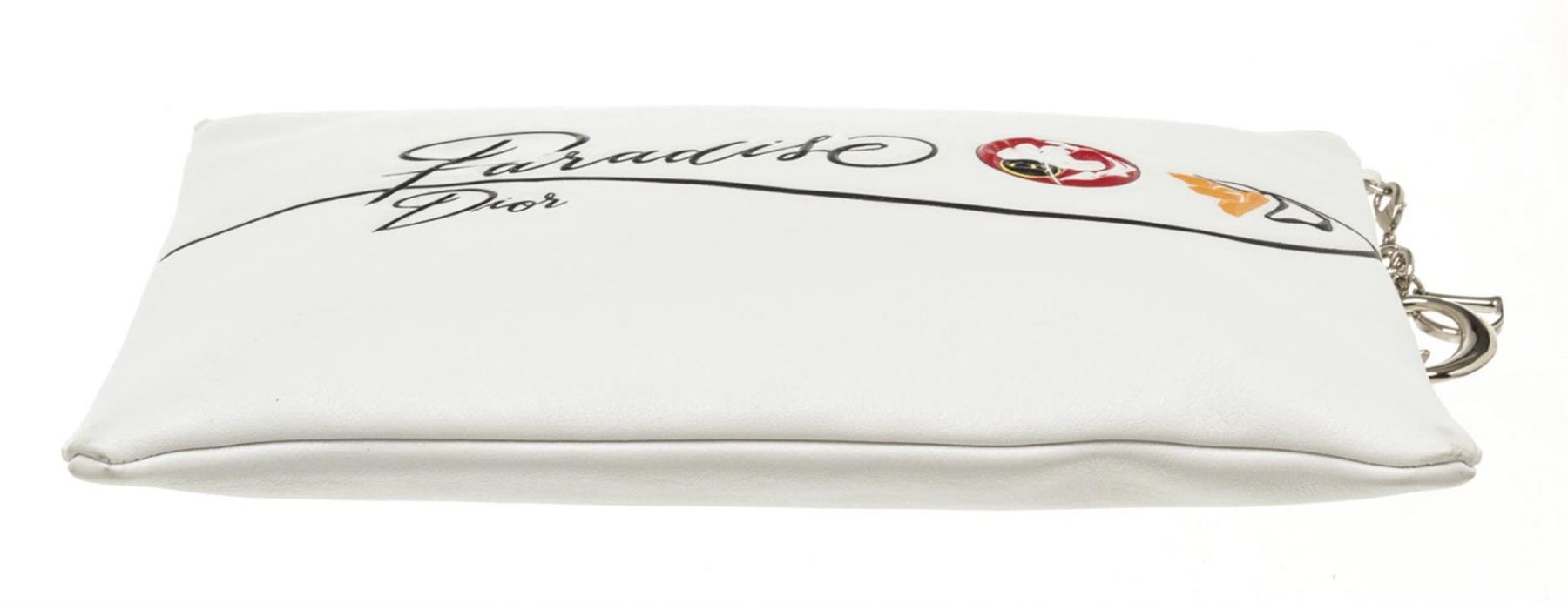 Christian Dior White Leather Paradise Zip Pouch Wallet. All available information is listed in the description and shown in the photos. Christian Dior White Leather Paradise Zip Pouch Wallet with leather, gold-tone hardware, interior slip pockets and zipper closure.