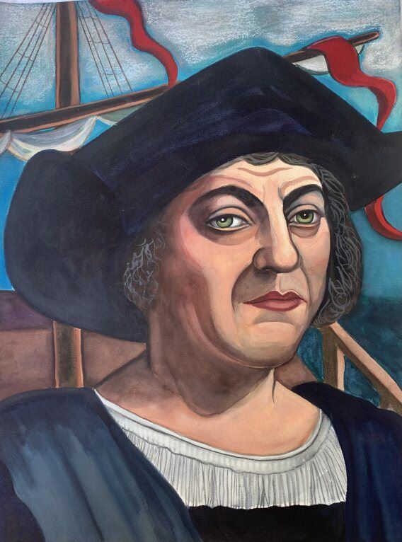 A pastel & watercolor portrait of the man who "discovered" America,though he thought it was India. 24x18" on deckled fine art paper, by Anonymous