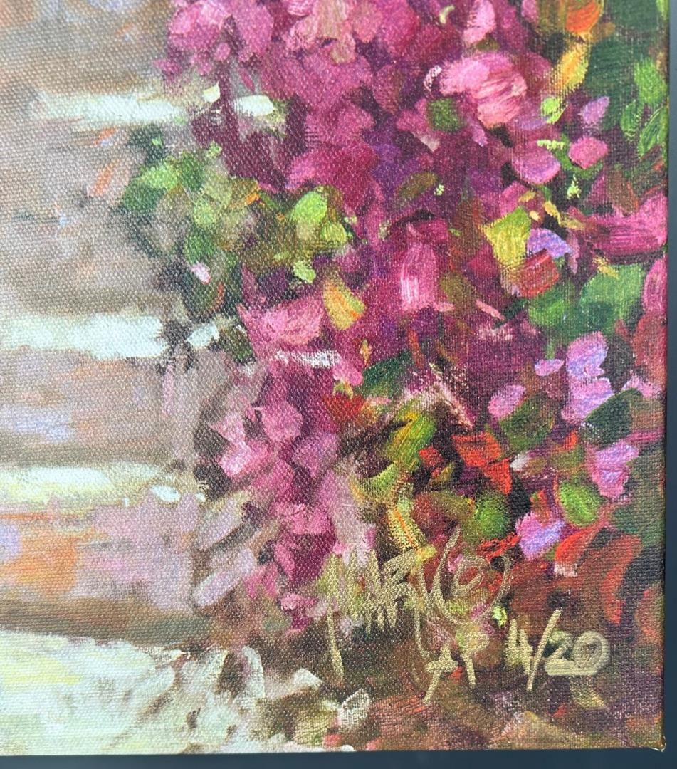 A stretched 32.5x32.5" giclee on canvas of the Italian coast. Signed & numbered AP4/20 by Mavrovich