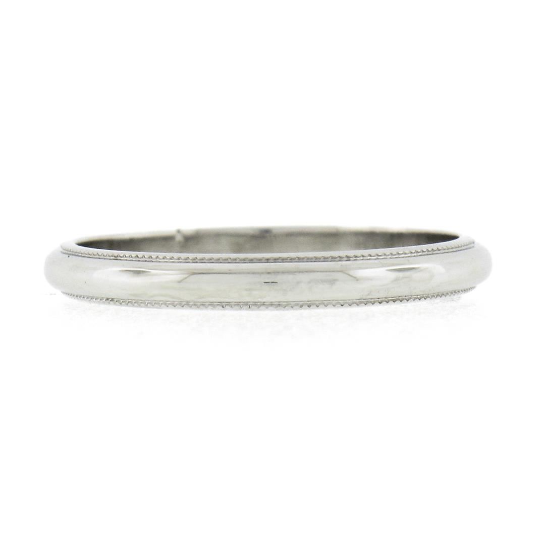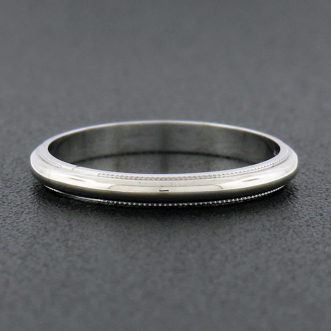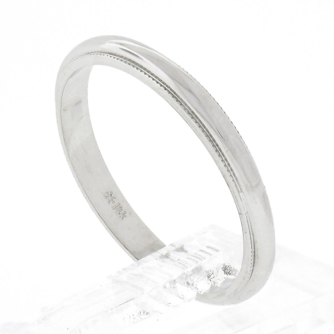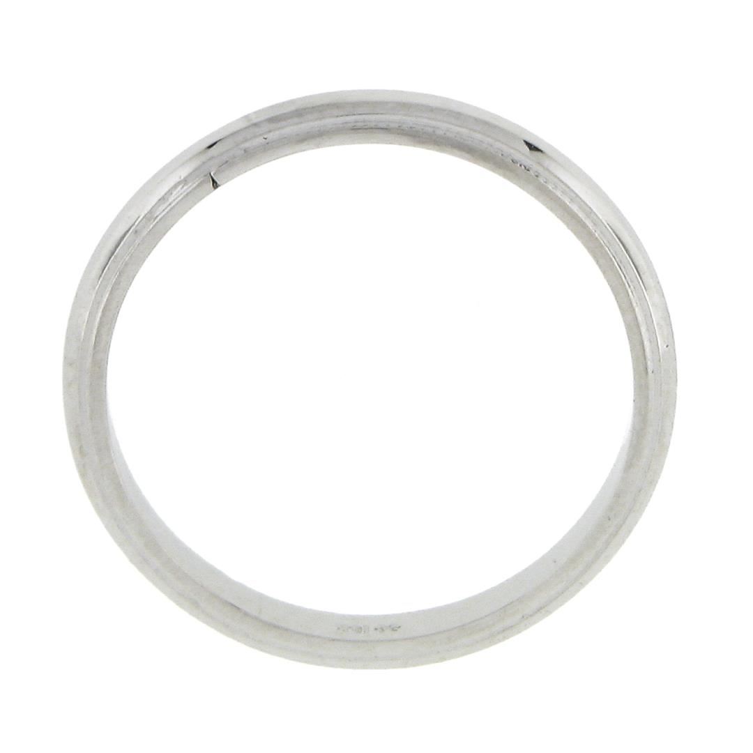 A solid 14k white gold band ring. The ring is size 4.5, weighs a total of 1.40 grams, and measures 2.2mm wide.