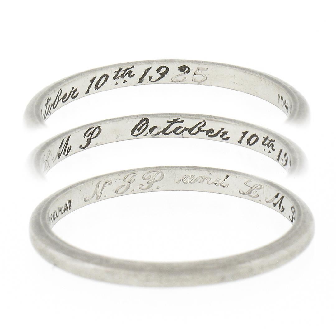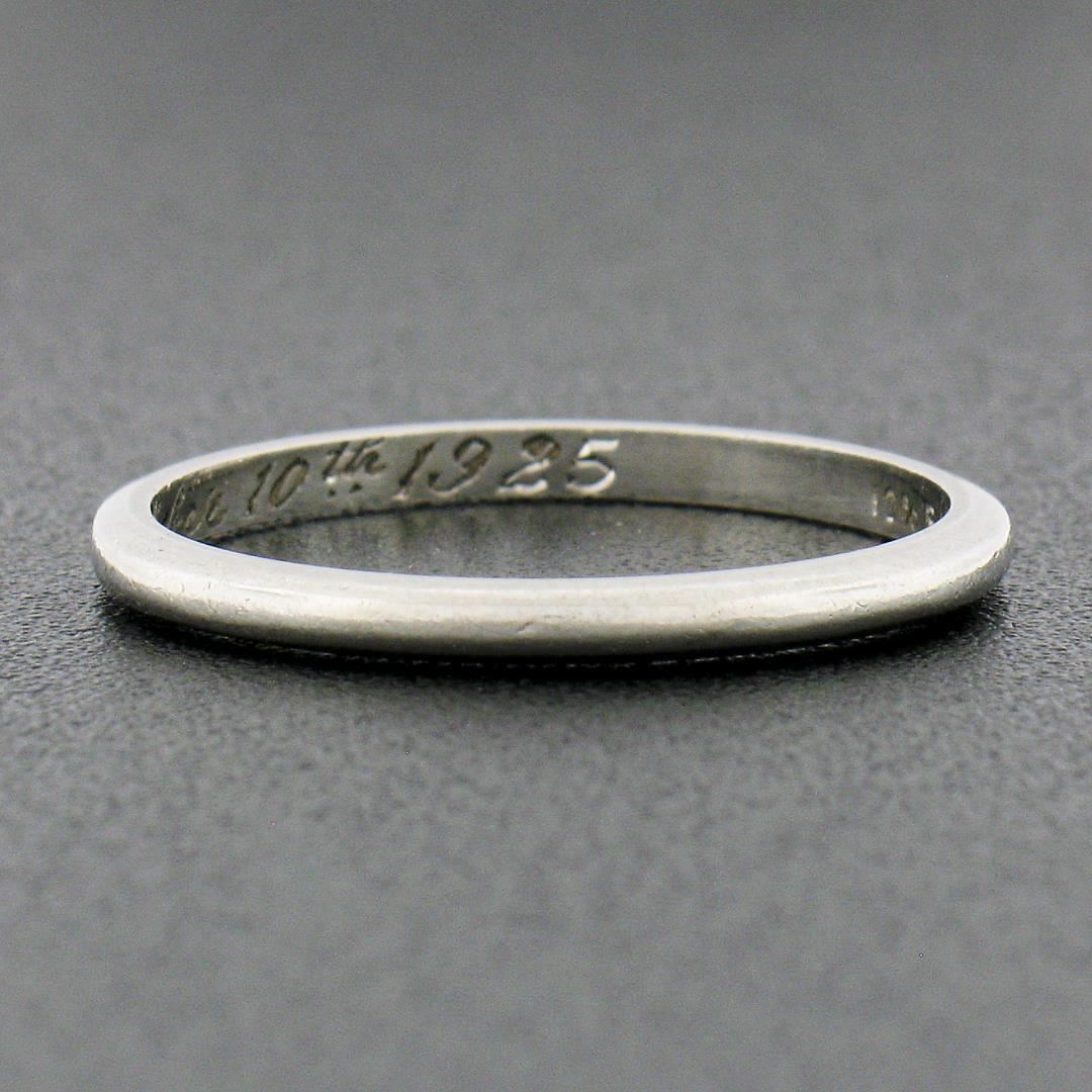 An antique solid platinum band ring. The ring is size 6.5, weighs a total of 2.46 grams, and measures 1.8mm wide.