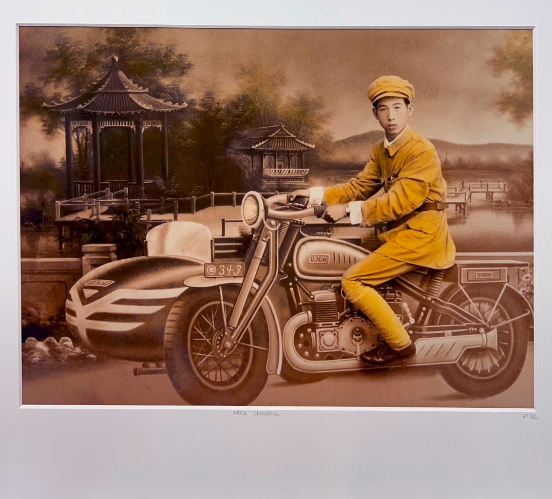 Classic DKW Motorcyle with Sidecar Viree Orientale YellowKorner Certified Photograph. Certificate of Authenticity from YellowKorner affixed to the back. Matted Dimensions 16"x20". Protected with Clear Mylar Sleeve.