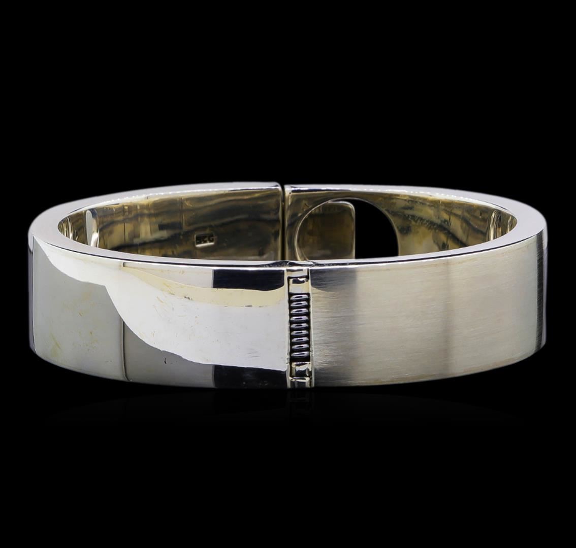 One of a kind high fashion sterling silver bracelet weighing 82.6 grams. This sterling silver promises a lasting shine.