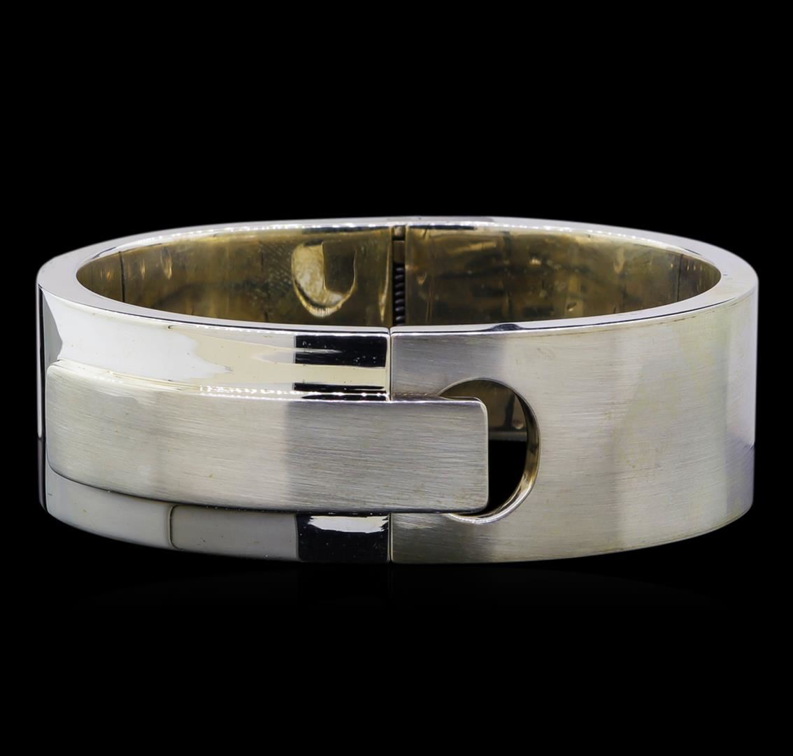 One of a kind high fashion sterling silver bracelet weighing 128.7 grams. This sterling silver promises a lasting shine.