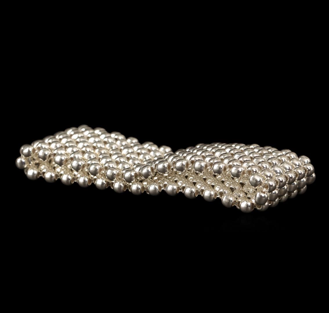 One of a kind high fashion sterling silver bracelet weighing 64.3 grams. This sterling silver promises a lasting shine.