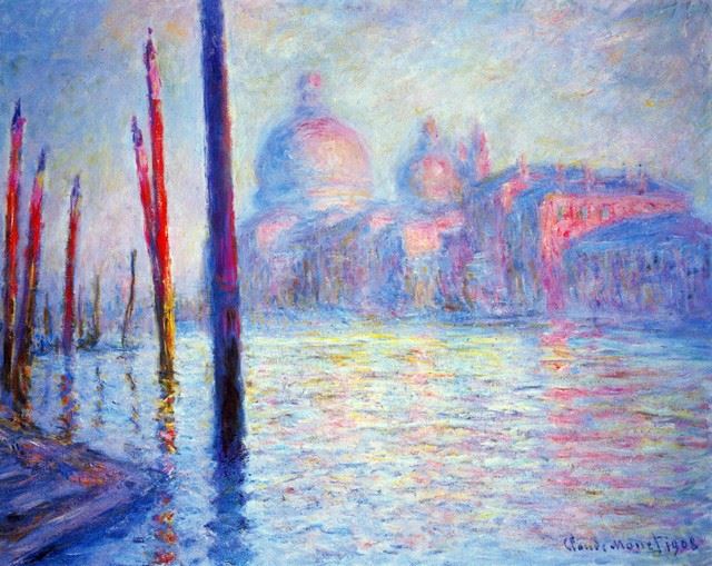 Artist: Claude Monet - Title: Canal Grand - Medium: Fine Art Reproduction Giclee on Canvas - Image Size: Approximately 16 inches x 20 inches - Unframed on Unstretched Canvas - Biography: Claude Monet was born on November 14, 1840, in Paris, France. He enrolled in the Academy Suisse. After an art exhibition in 1874, a critic insultingly dubbed Monet's painting style "Impression," since it was more concerned with form and light than realism, and the term stuck. Monet struggled with depression, poverty and illness throughout his life. He died in 1926.