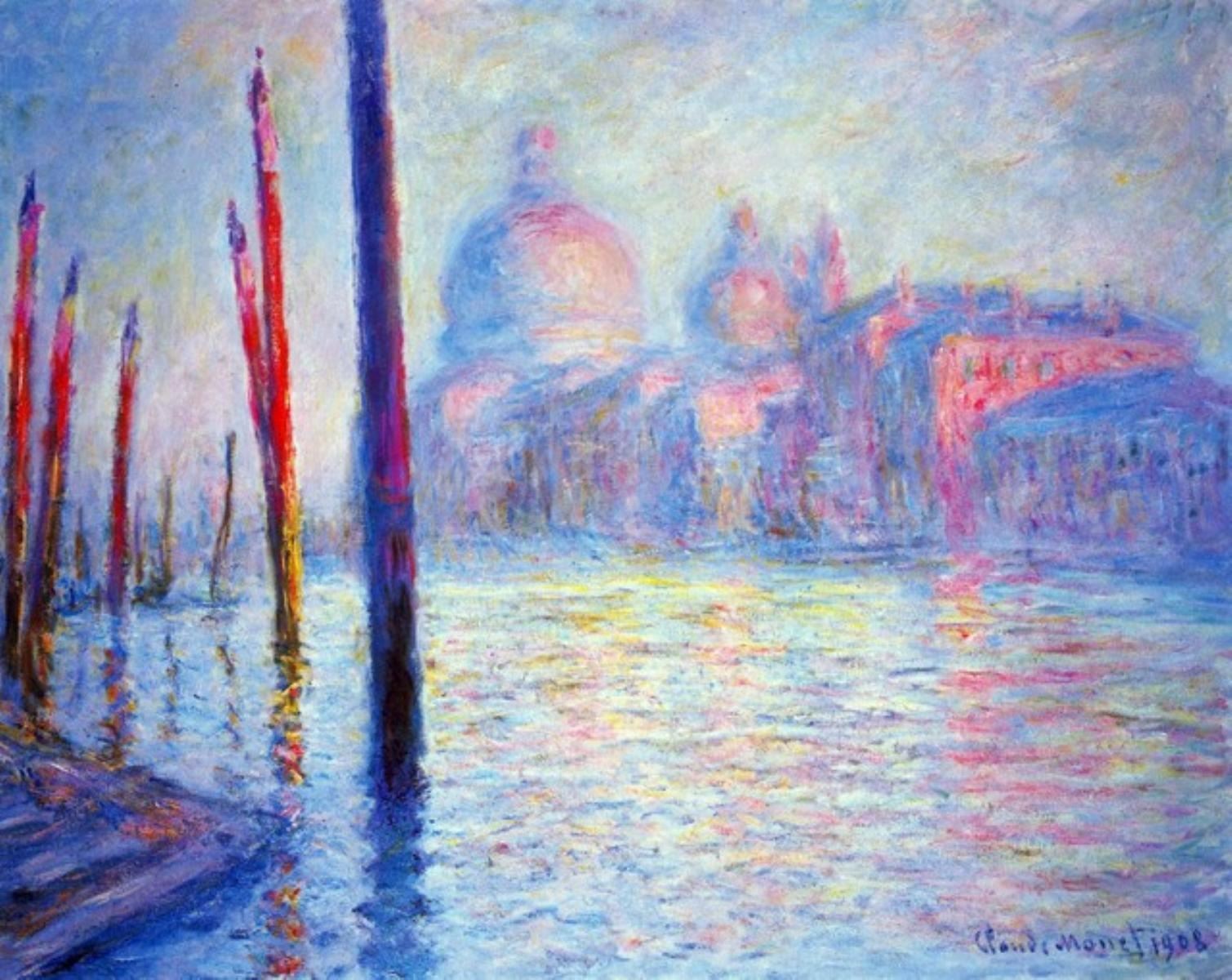 Artist: Claude Monet - Title: Canal Grand - Medium: Fine Art Reproduction Giclee on Canvas - Image Size: Approximately 25.5 inches x 32 inches - Unframed on Unstretched Canvas - Biography: Claude Monet was born on November 14, 1840, in Paris, France. He enrolled in the Academy Suisse. After an art exhibition in 1874, a critic insultingly dubbed Monet's painting style "Impression," since it was more concerned with form and light than realism, and the term stuck. Monet struggled with depression, poverty and illness throughout his life. He died in 1926.