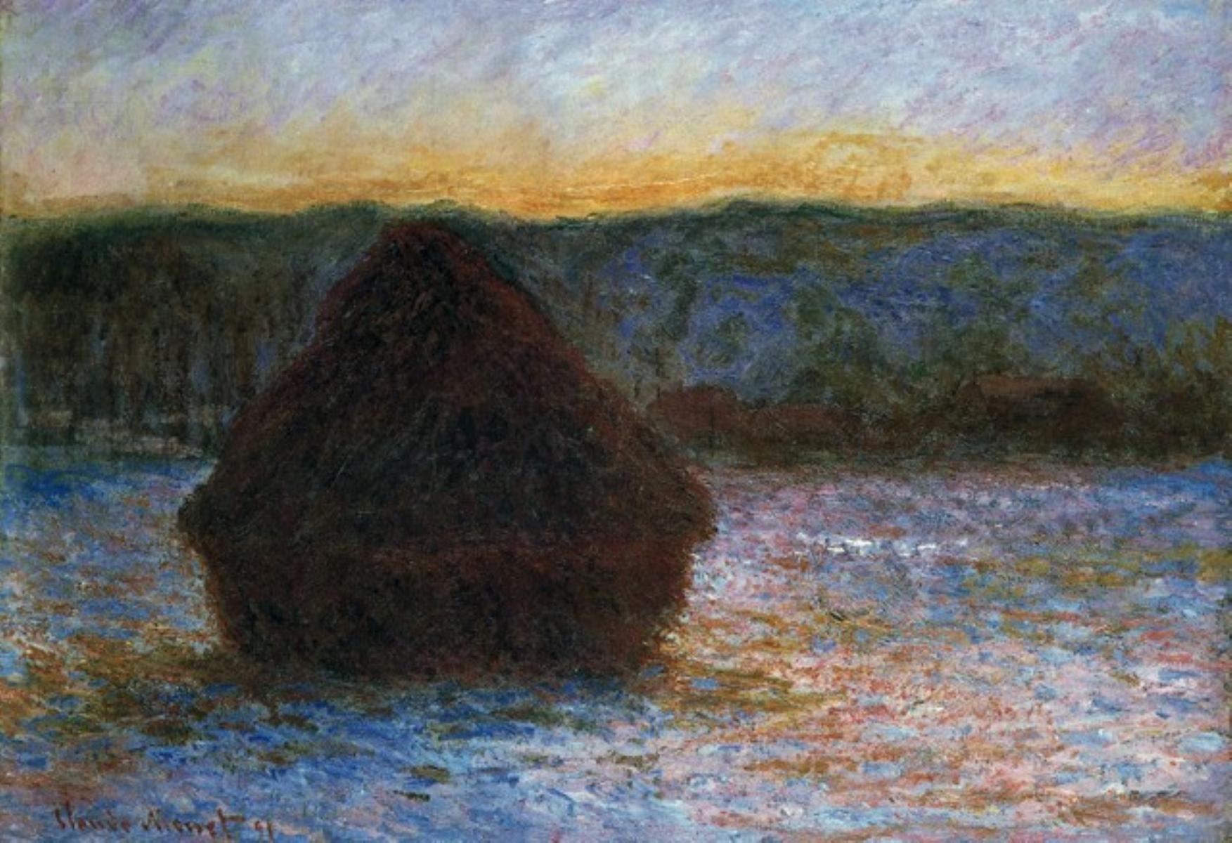 Artist: Claude Monet - Title: Haylofts Thaw, Sunset - Medium: Fine Art Reproduction Giclee on Canvas - Image Size: Approximately 13.75 inches x 20 inches - Unframed on Unstretched Canvas - Biography: Claude Monet was born on November 14, 1840, in Paris, France. He enrolled in the Academy Suisse. After an art exhibition in 1874, a critic insultingly dubbed Monet's painting style "Impression," since it was more concerned with form and light than realism, and the term stuck. Monet struggled with depression, poverty and illness throughout his life. He died in 1926.