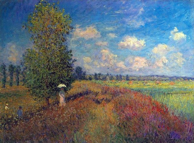 Artist: Claude Monet - Title: Poppy Field in Summer - Medium: Fine Art Reproduction Giclee on Canvas - Image Size: Approximately 23.5 inches x 32 inches - Unframed on Unstretched Canvas - Biography: Claude Monet was born on November 14, 1840, in Paris, France. He enrolled in the Academy Suisse. After an art exhibition in 1874, a critic insultingly dubbed Monet's painting style "Impression," since it was more concerned with form and light than realism, and the term stuck. Monet struggled with depression, poverty and illness throughout his life. He died in 1926.