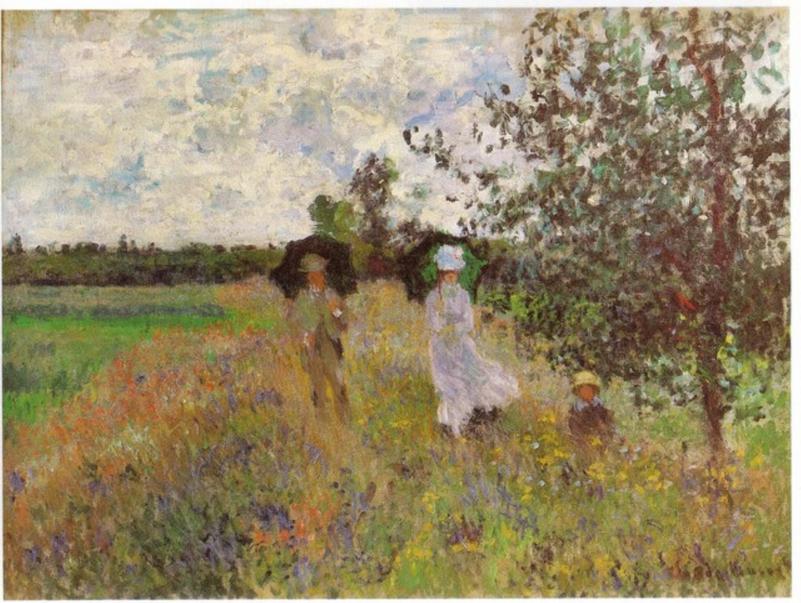 Artist: Claude Monet - Title: Promenade a Argenteuil 1875 - Medium: Fine Art Reproduction Giclee on Canvas - Image Size: Approximately 15 inches x 20 inches - Unframed on Unstretched Canvas - Biography: Claude Monet was born on November 14, 1840, in Paris, France. He enrolled in the Academy Suisse. After an art exhibition in 1874, a critic insultingly dubbed Monet's painting style "Impression," since it was more concerned with form and light than realism, and the term stuck. Monet struggled with depression, poverty and illness throughout his life. He died in 1926.