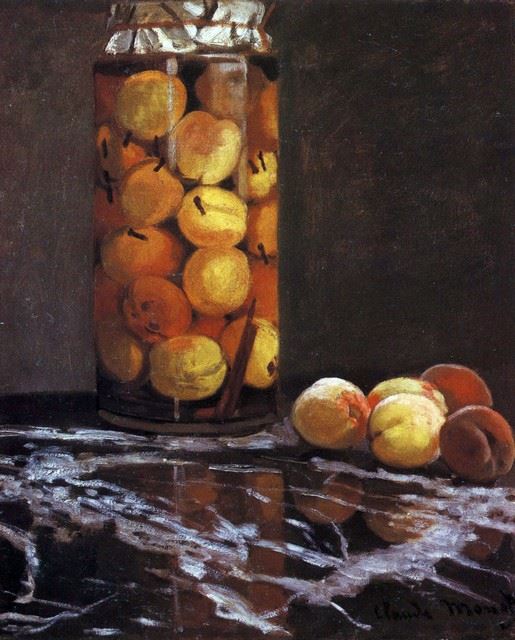 Artist: Claude Monet - Title: The Peach Glass - Medium: Fine Art Reproduction Giclee on Canvas - Image Size: Approximately 32 inches x 25.75 inches - Unframed on Unstretched Canvas - Biography: Claude Monet was born on November 14, 1840, in Paris, France. He enrolled in the Academy Suisse. After an art exhibition in 1874, a critic insultingly dubbed Monet's painting style "Impression," since it was more concerned with form and light than realism, and the term stuck. Monet struggled with depression, poverty and illness throughout his life. He died in 1926.