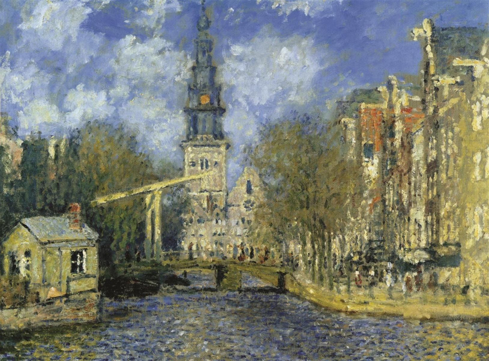 Artist: Claude Monet - Title: Zuiderkerk At Amsterdam - Medium: Fine Art Giclee on Canvas - Image Size: Approximately 14.75 inches x 20 inches - Framed: Unframed on Unstretched Canvas - Claude Monet was born on November 14, 1840, in Paris, France. He enrolled in the Academy Suisse. After an art exhibition in 1874, a critic insultingly dubbed Monet's painting style "Impression," since it was more concerned with form and light than realism, and the term stuck. Monet struggled with depression, poverty and illness throughout his life. He died in 1926.