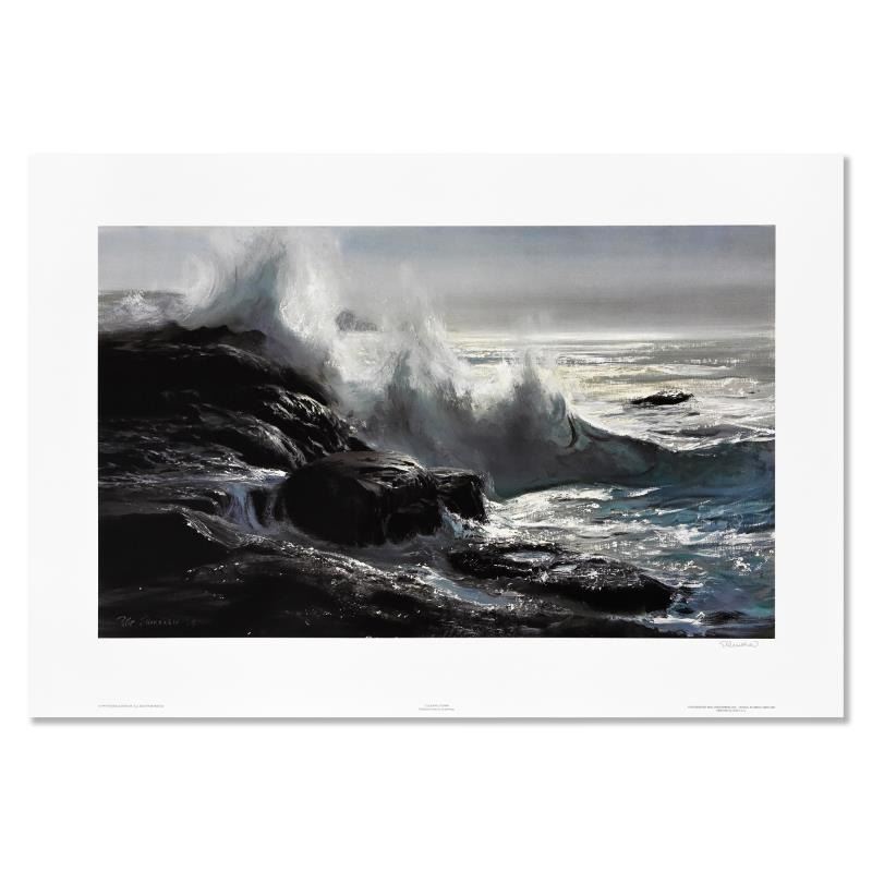 "Clearing Storm" is a limited edition lithograph on paper by Peter Ellenshaw (1913-2007), numbered and hand signed by the artist. Includes Letter of Authenticity. Measures approx. 26" x 17.5" (border), 21.5" x 13" (image). Please note: due to the very thin nature of this paper, there may be some minor creases.