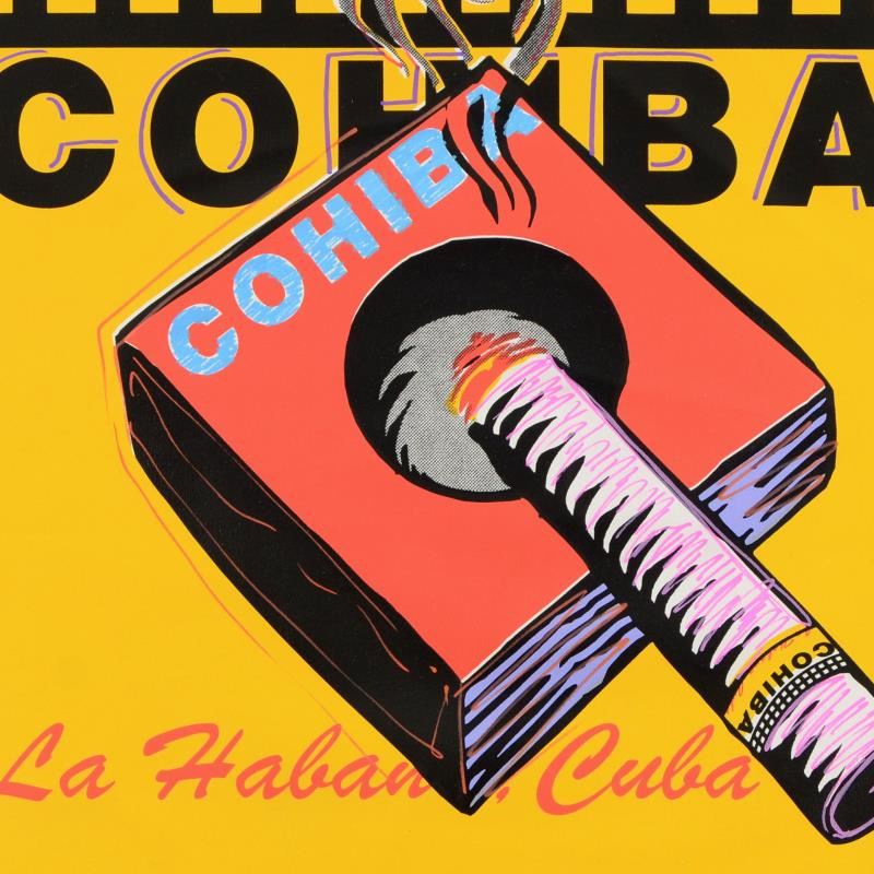 "Cohiba" is a hand painted one-of-a-kind silkscreen on canvas by Andy Warhol protege Steve Kaufman (1960-2010), hand signed inverso. Includes letter of authenticity. Measures approx. 24" x 24" (image).