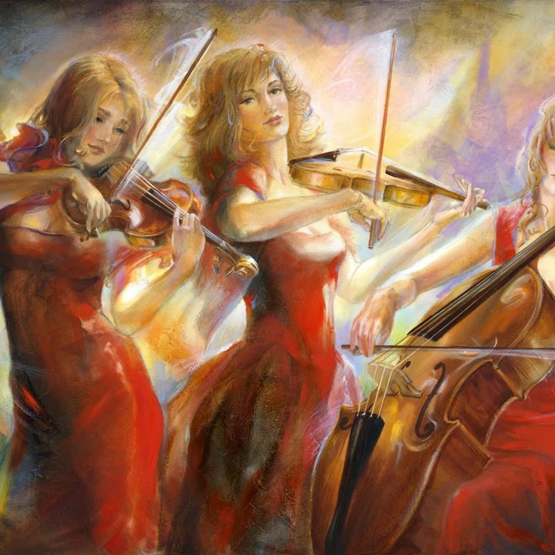 "Concert" is an artist embellished limited edition giclee on canvas. This piece is numbered and hand-signed by the artist and accompanied by a Certificate of Authenticity. Measures approximately 25" x 40". This item requires special handling and may have a longer than usual turnaround.