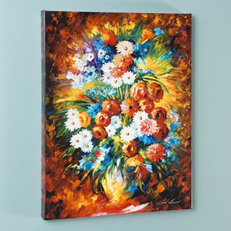 Leonid Afremov's (1955-2019) masterful use of color and texture make his paintings unique collectibles that are sure to brighten any wall. "Congratulations" is a limited edition giclee on canvas. The piece is numbered and bears the artist's authorized signature. This piece comes gallery wrapped. Includes Letter of Authenticity. Measures approx. 24" x 18" (image).