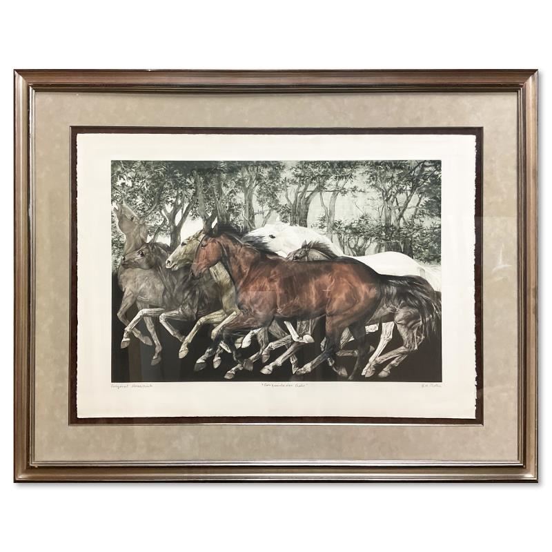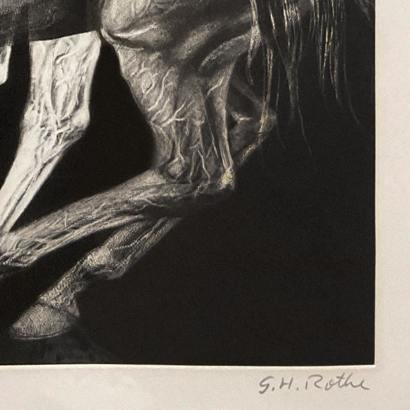 "Conquistador Cielo" is an original mezzotint on paper by G.H. Rothe (1935-2007), hand signed by the artist. This piece comes framed. Includes Letter of Authenticity. Measures approx. 45" x 57" (frame), 24" x 35" (image). There is some wear on the frame.