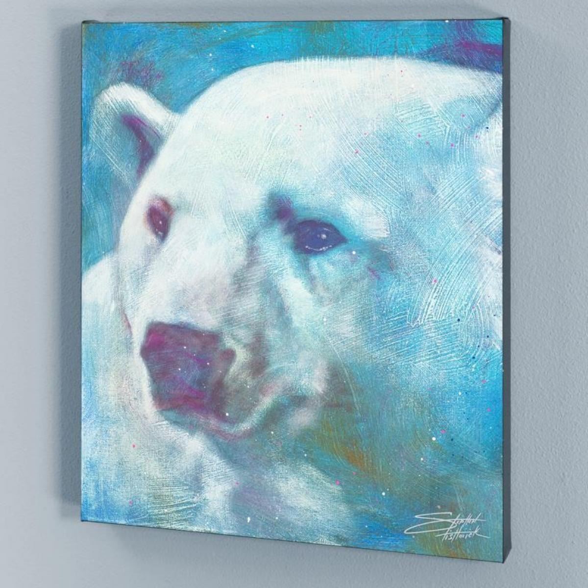 With bright colors and expressive lines, Stephen Fishwick puts a unique spin on pop culture portraits. "Cool Intentions" is a limited edition giclee on stretched canvas, numbered and bears the artist's authorized signature. This piece comes gallery wrapped! Includes Letter of Authenticity. Measures approx. 16" x 20" (image).