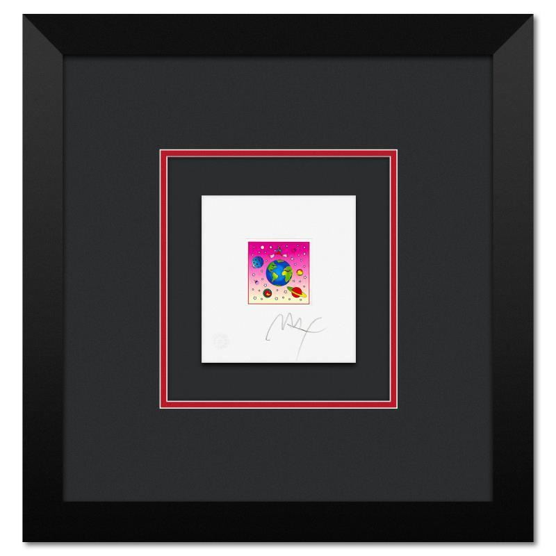 "Cosmic Runner with Planets" is a limited edition lithograph on paper by Peter Max, numbered and hand signed by the artist. This piece comes framed. Includes Certificate of Authenticity from Peter Max Studios. Measures approx. 15" x 14.5" (frame), 5" x 4.5" (image).
