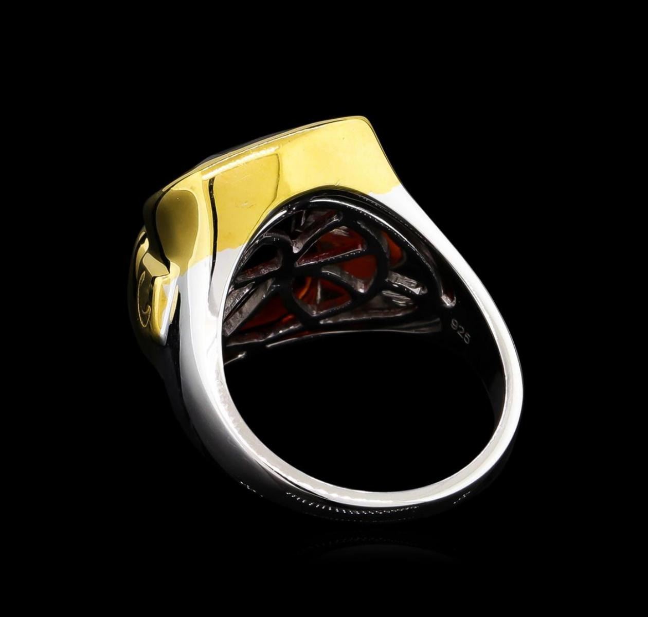 From the brand whose products have inspired creative expression for more than 110 years comes this beautiful ring by Crayola. This stunning piece of jewelry reflects the image and colorful personality of the Crayola brand. The Ring features .925 Silver With Rhodium Two-Tone weighing 6.5oz containing Maroon Garnet (AAA) Cushion 12x10mm (With J BACK & Yellow Pan Rhodium) Laser engraved "C" logo on side. Total Garnet weight is 10.9ct.