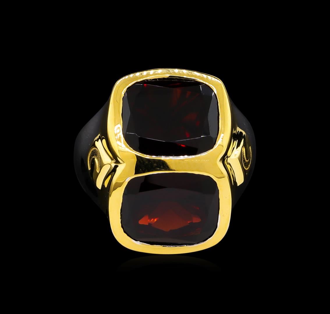 From the brand whose products have inspired creative expression for more than 110 years comes this beautiful ring by Crayola. This stunning piece of jewelry reflects the image and colorful personality of the Crayola brand. The Ring features .925 Silver With Rhodium Two-Tone weighing 6.5oz containing Maroon Garnet (AAA) Cushion 12x10mm (With J BACK & Yellow Pan Rhodium) Laser engraved "C" logo on side. Total Garnet weight is 10.9ct.