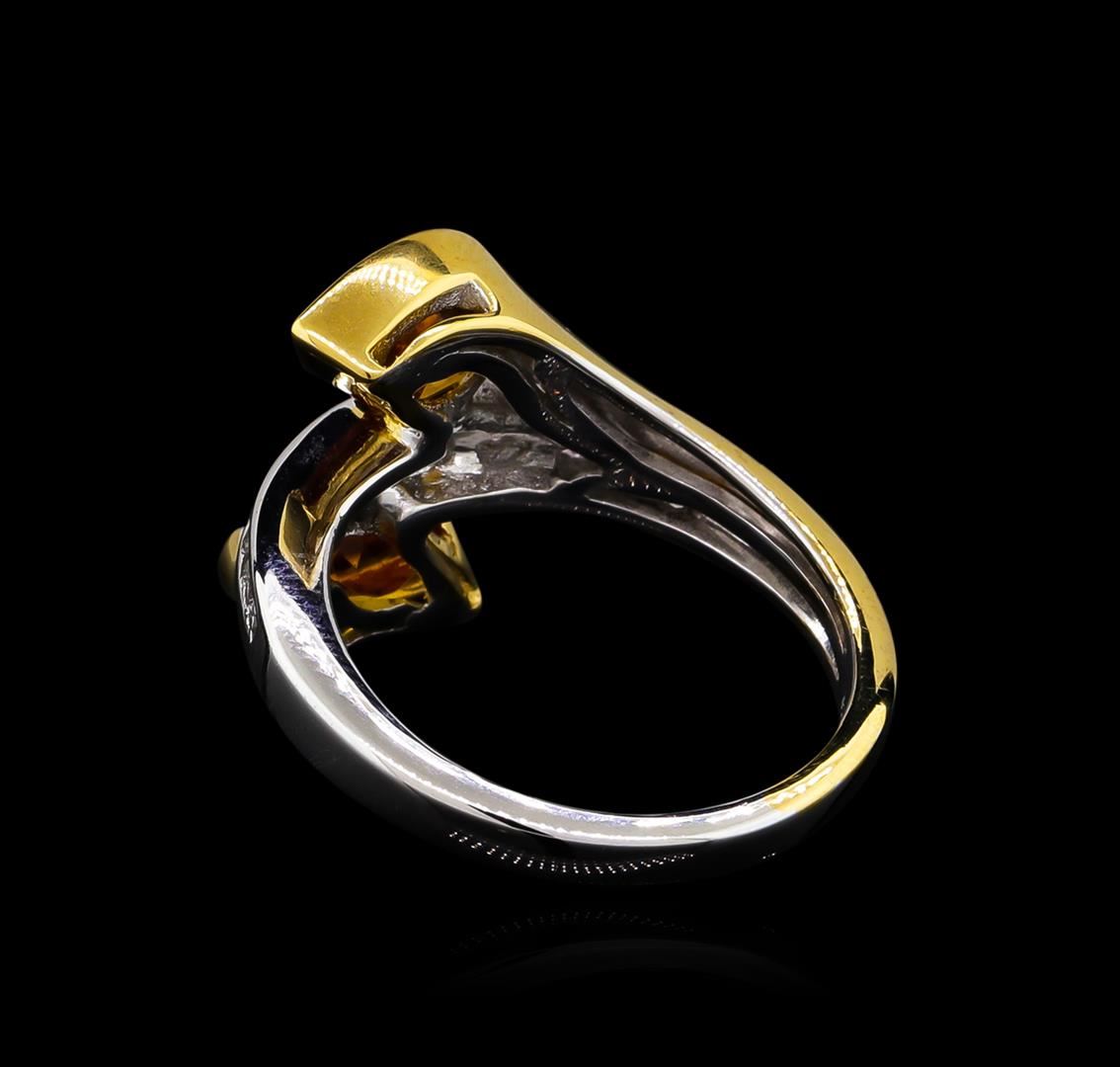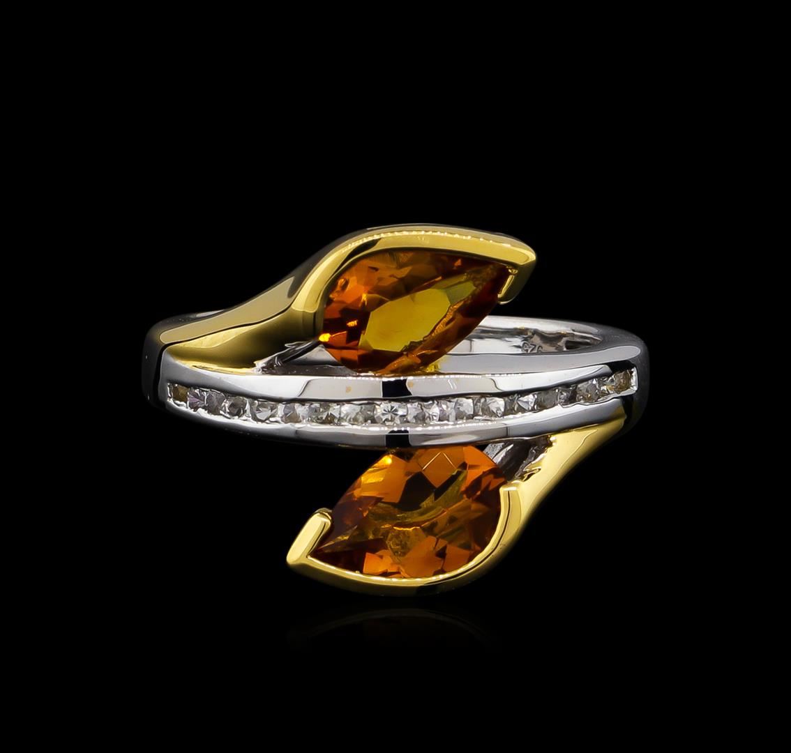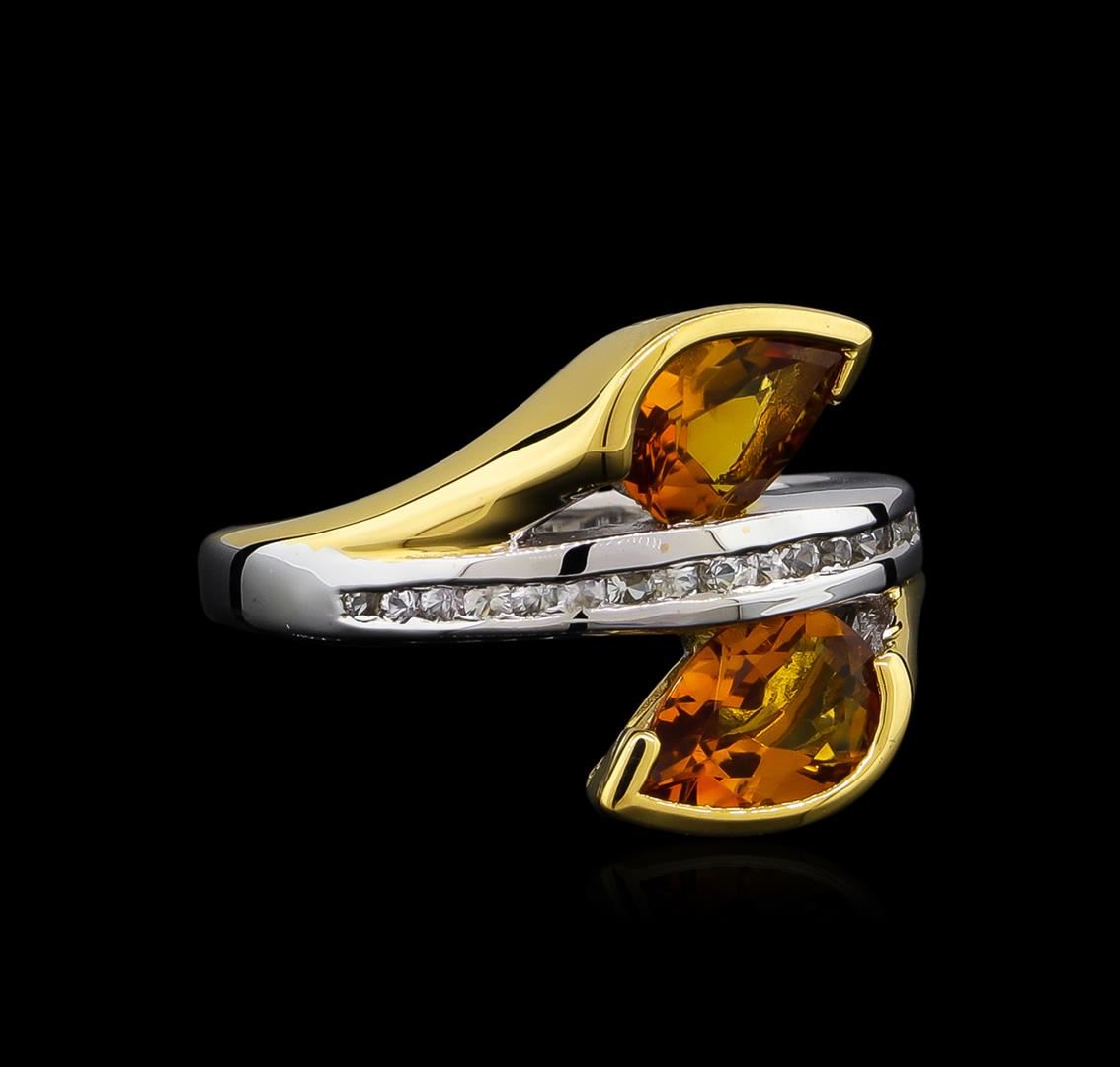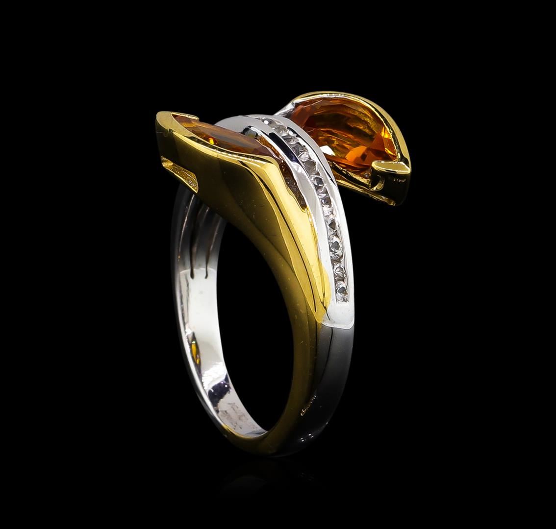 From the brand whose products have inspired creative expression for more than 110 years comes this beautiful ring by Crayola. This stunning piece of jewelry reflects the image and colorful personality of the Crayola brand. The Ring features .925 Silver With Rhodium Two-Tone weighing 4.41oz containing Neon Carrot Citrine (AAA) Pears 9x6mm - 2Pcs + Natural White Sapphire Round 1.50mm - 18Pcs (With J BACK & Yellow Pan Rhodium). Total Citrine weight is 2.2ct. Total White Sapphire weight is 0.31ct.