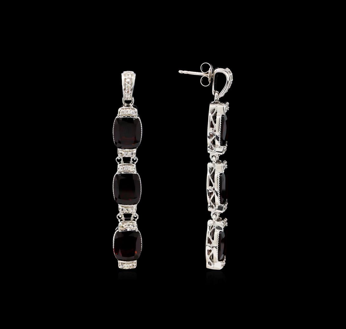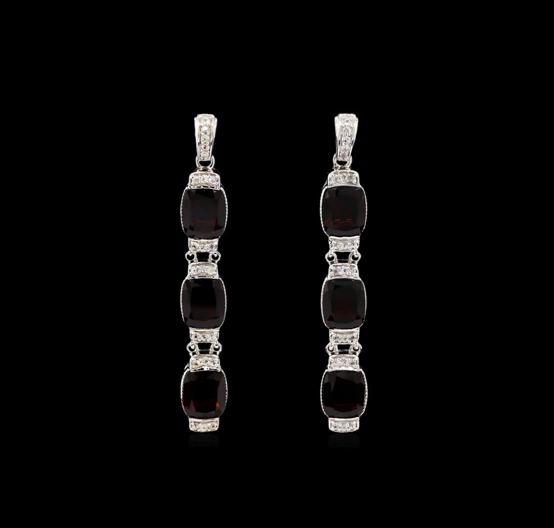 From the brand whose products have inspired creative expression for more than 110 years comes this beautiful pair of earrings by Crayola. This stunning piece of jewelry reflects the image and colorful personality of the Crayola brand. The Earrings features .925 Silver With Rhodium weighing 10.16oz containing Maroon Garnet (AAA) Cushion 10x8mm - 6Pcs + Natural White Sapphire Round 1.50mm - 46Pcs (With J BACK). Total Garnet weight is 21ct. Total White Sapphire weight is 0.78ct.