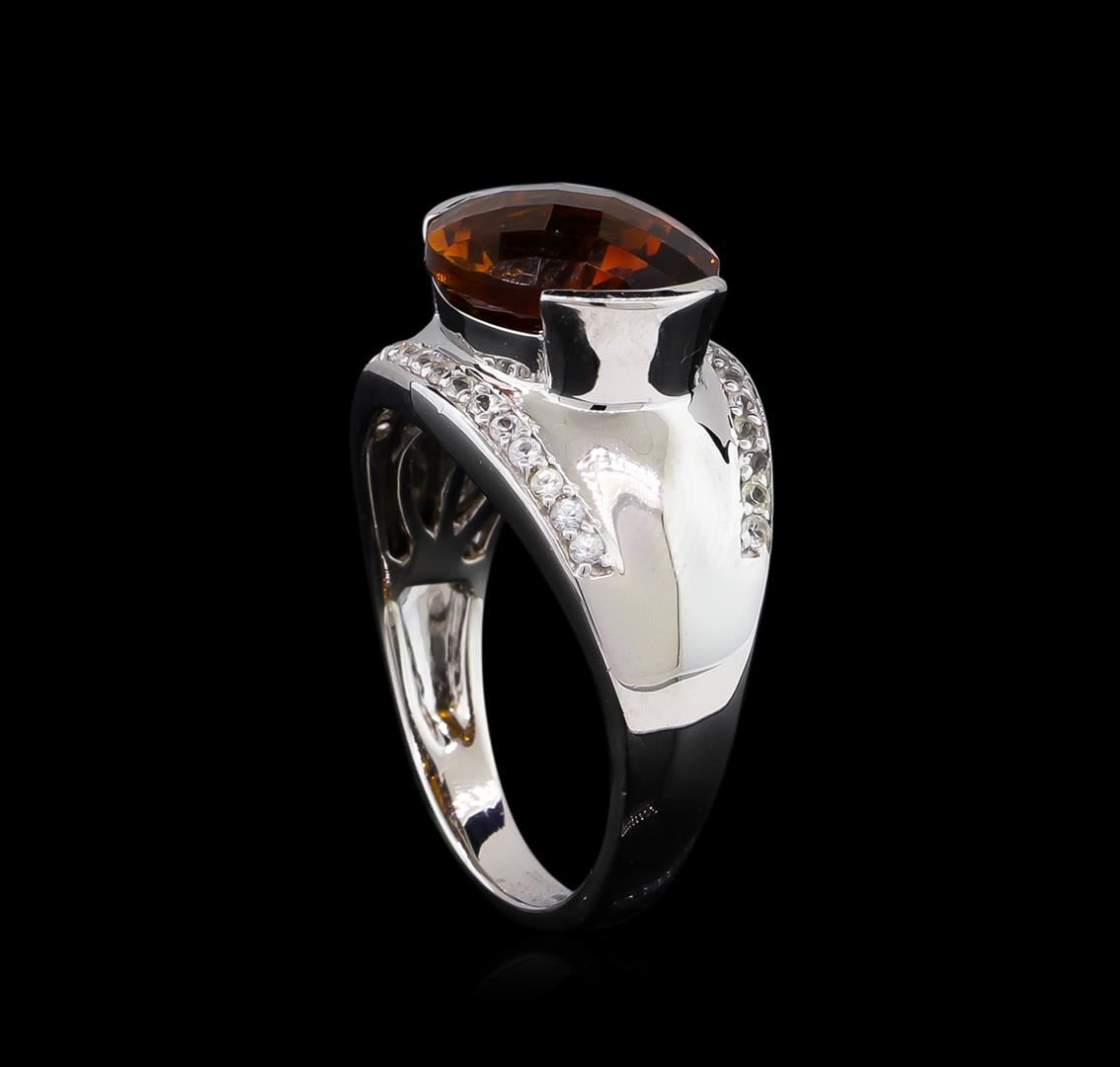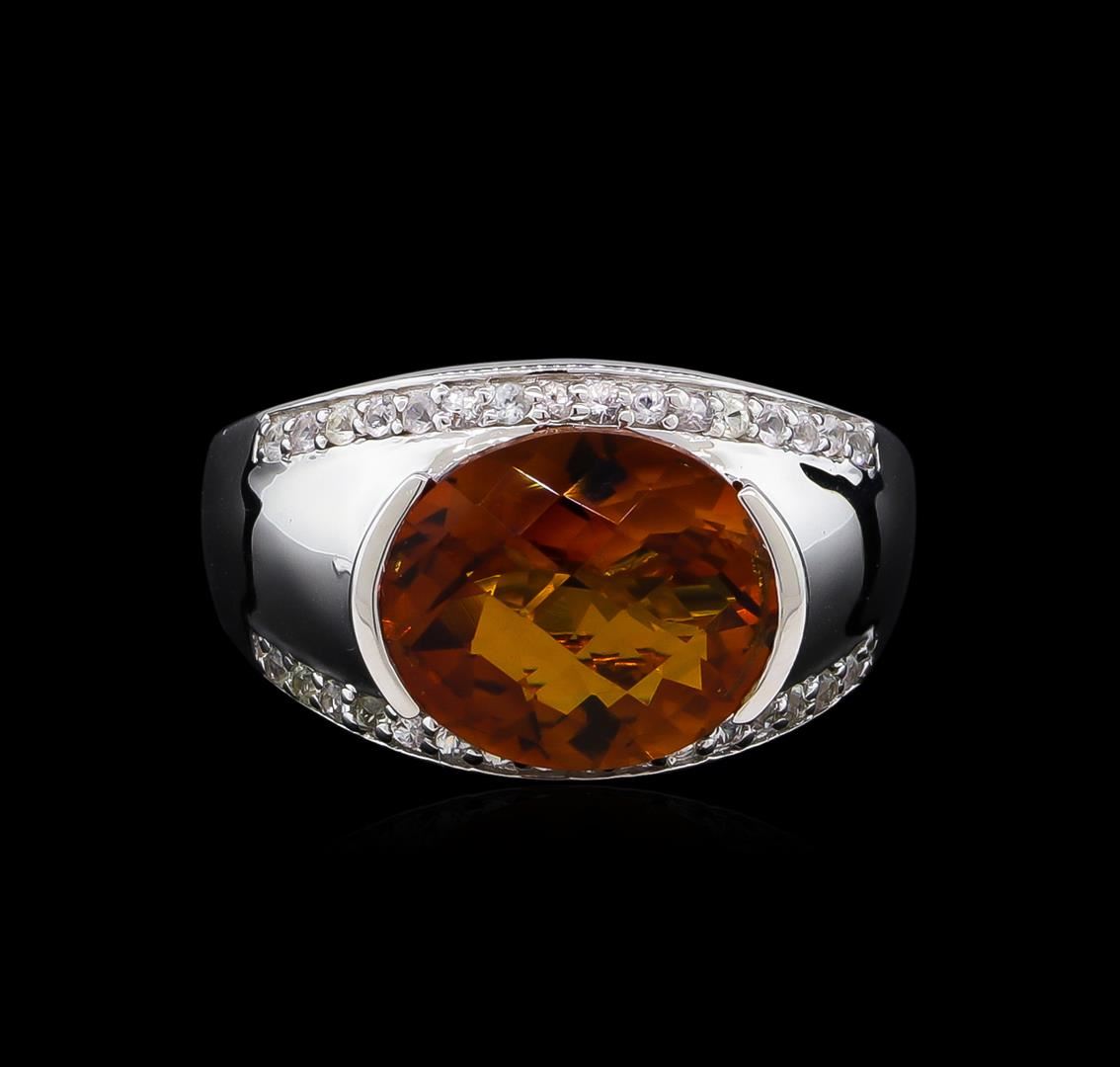 From the brand whose products have inspired creative expression for more than 110 years comes this beautiful ring by Crayola. This stunning piece of jewelry reflects the image and colorful personality of the Crayola brand. The Ring features .925 Silver With Rhodium weighing 5.58oz containing Neon Carrot Citrine (AAA) CB Oval 12x10mm - 1Pc + Natural White Sapphire Round 1.20mm - 32Pcs (With J BACK). Total Citrine weight is 3.95ct. Total White Sapphire weight is 0.38ct.