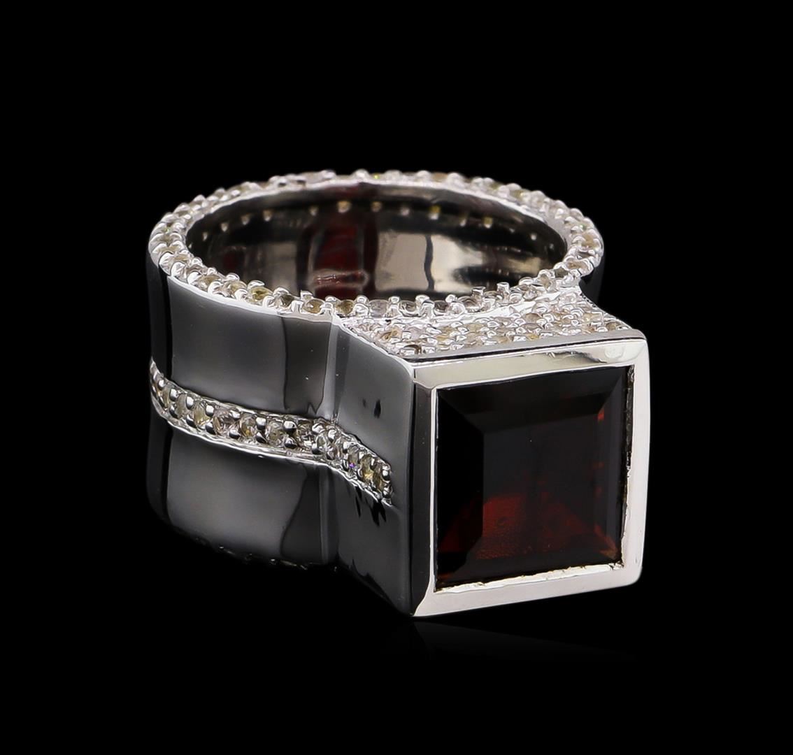 From the brand whose products have inspired creative expression for more than 110 years comes this beautiful ring by Crayola. This stunning piece of jewelry reflects the image and colorful personality of the Crayola brand. The Ring features .925 Silver With Rhodium weighing 8.2oz containing Maroon Garnet (AAA) Square 9.00mm - 1Pc + Natural White Sapphire Round 1.10mm - 195Pcs (With J BACK). Total Garnet weight is 4.2ct. Total White Sapphire weight is 1.76ct.