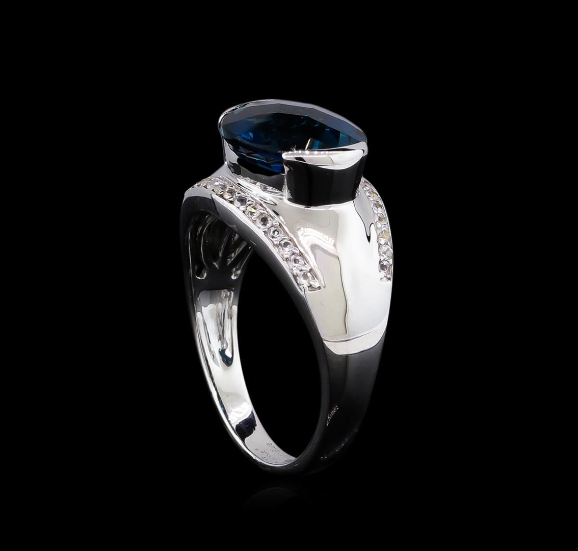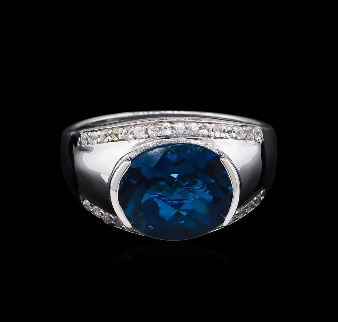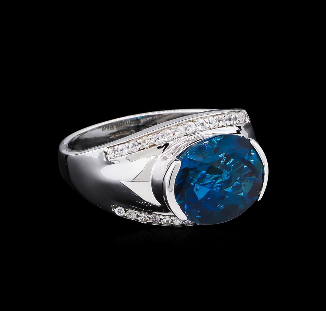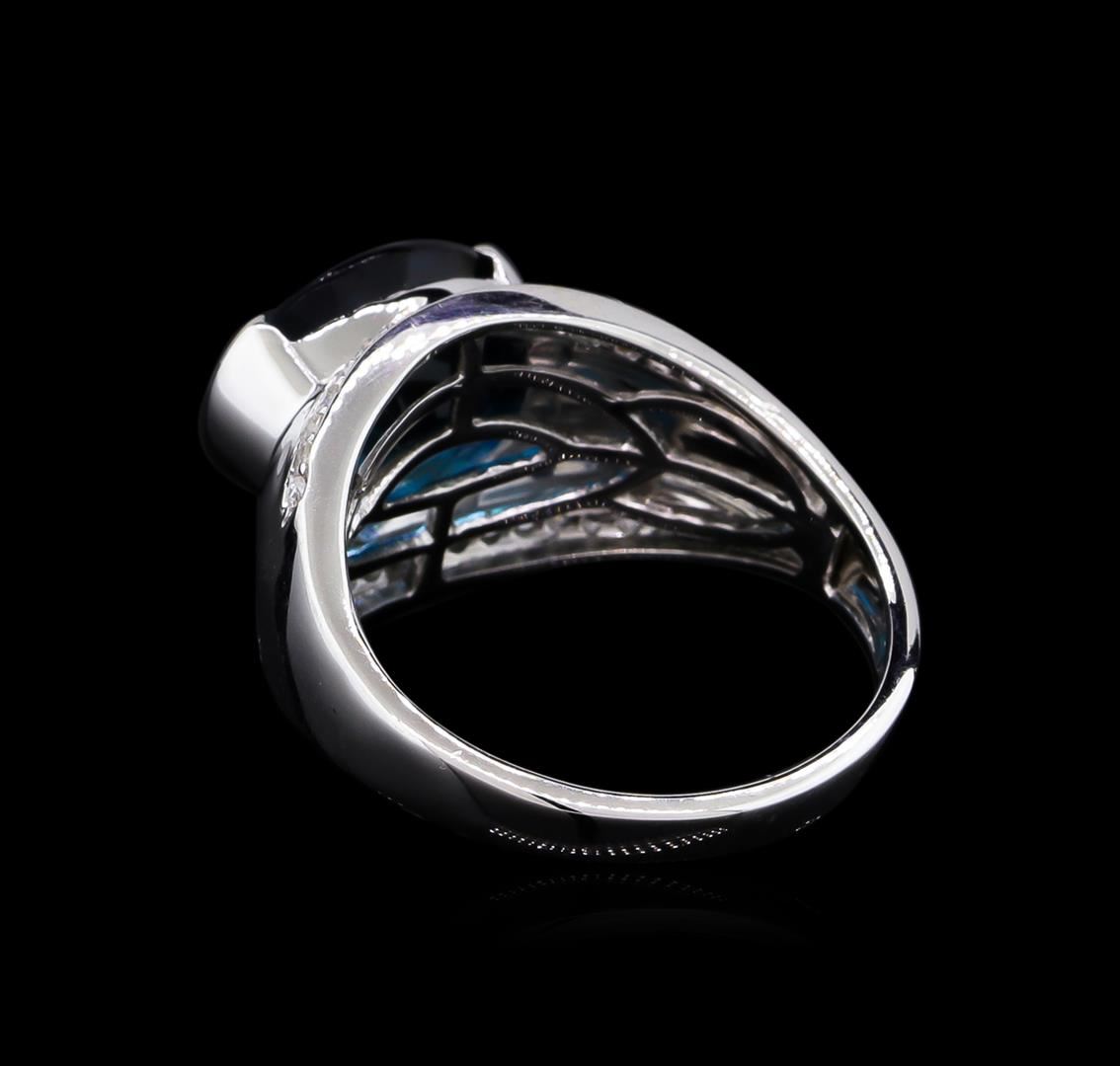 From the brand whose products have inspired creative expression for more than 110 years comes this beautiful ring by Crayola. This stunning piece of jewelry reflects the image and colorful personality of the Crayola brand. The Ring features .925 Silver With Rhodium weighing 5.58oz containing Midnight Blue London Blue Topaz (AAA) CB Oval 12x10mm - 1Pc + Natural White Sapphire Round 1.20mm - 32Pcs (With J BACK). Total Blue Topaz weight is 5.1ct. Total White Sapphire weight is 0.38ct.