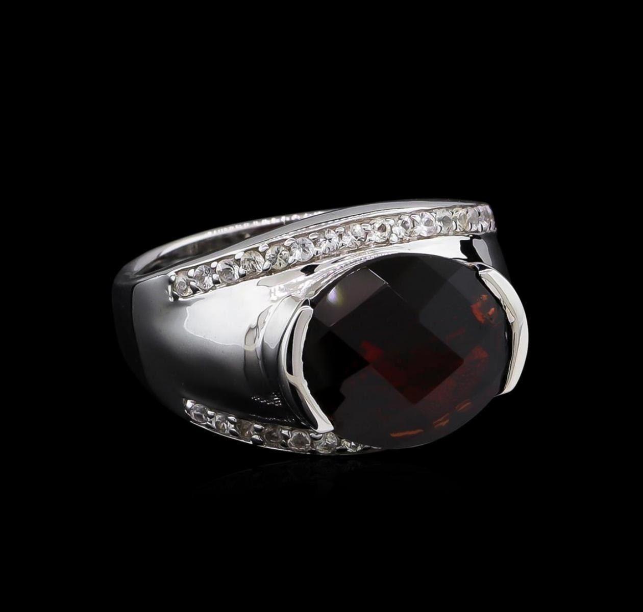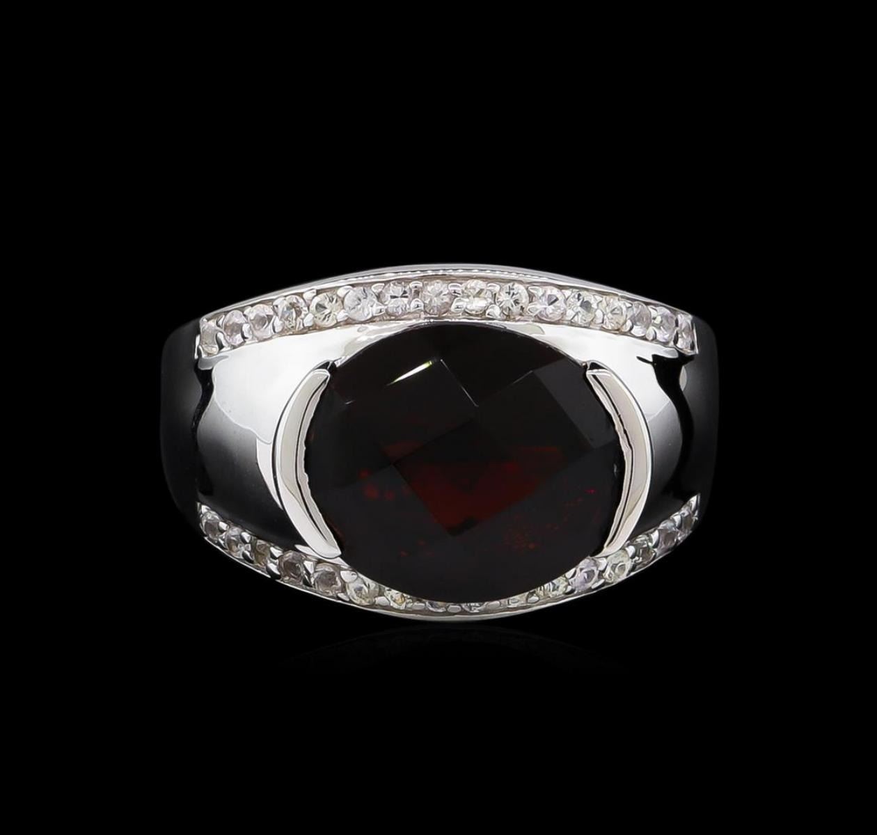 From the brand whose products have inspired creative expression for more than 110 years comes this beautiful ring by Crayola. This stunning piece of jewelry reflects the image and colorful personality of the Crayola brand. The Ring features .925 Silver With Rhodium weighing 5.58oz containing Maroon Garnet (AAA) CB Oval 12x10mm - 1Pc + Natural White Sapphire Round 1.20mm - 32Pcs (With J BACK). Total Garnet weight is 5.1ct. Total White Sapphire weight is 0.38ct.