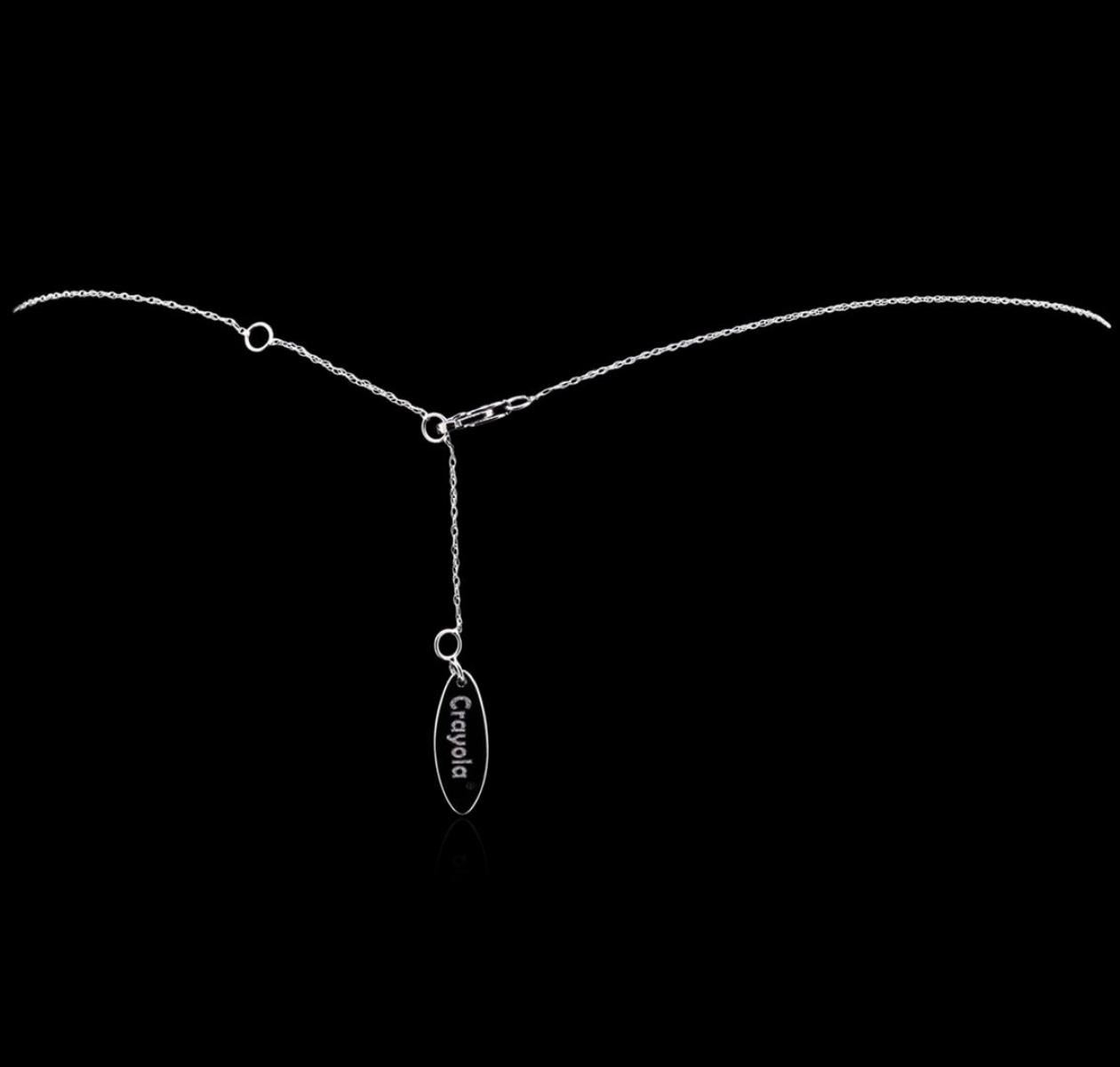 From the brand whose products have inspired creative expression for more than 110 years comes this beautiful pendant with chain by Crayola. This stunning piece of jewelry reflects the image and colorful personality of the Crayola brand. The Pendant With Chain features 14K White Gold weighing 4.5oz containing Purple Heart Amethyst (AAA) Oval Setting with open back 15x12mm - 1Pcs 16" with 2" Extender, Lobster clasp and laser engraved Crayola jewelry tag. Total Amethyst weight is 8.8ct.