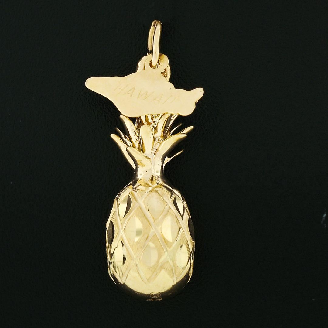 Crea 14k Gold Detailed Textured Diamond Cut 3D Pineapple Hawaii Charm Pendant