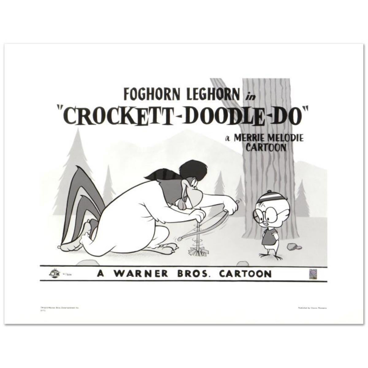 "Crockett Doodle Do" is a limited edition giclee on paper from Warner Bros., numbered with hologram seal of Authenticity. This image was originally used as a "lobby card" displayed in theater lobbies to publicize animated shorts. Also, includes Certificate of Authenticity! Measures approx. 20" x 16" (with border), 16" x 12" (image).