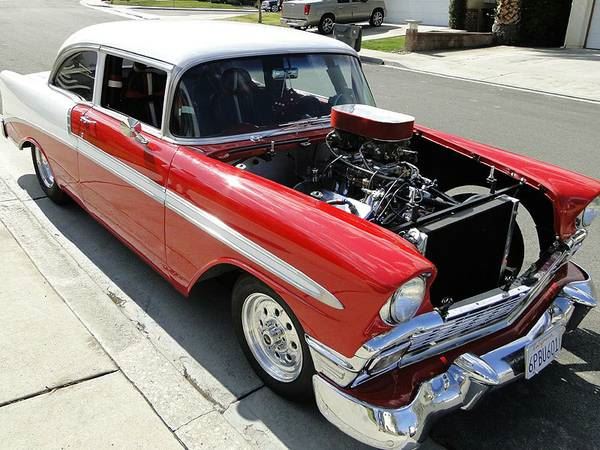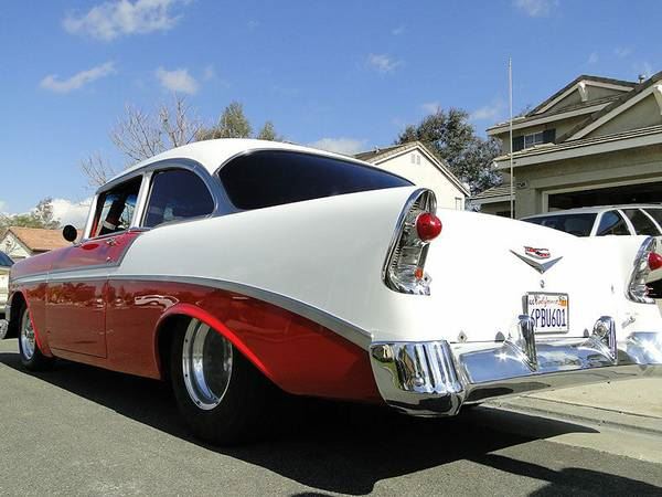 Custom 1956 Belair Prostreet Hot Rod. If you're looking for a finished Prostreet hotrod then this is the one for you. This Hotrod needs nothing, because it has everything including Tube Chassis, Beautiful All Steel Body, Paint Excellent, Wave-Trak Locker Crissman 9", New Street Legal Mickys, Ladders In Rear, Tubbed, All Alum. Interior, Mustang Front Suspension Disks, Coil Over All 4 Corners. 505" BB Merlins Heads, Lunati Crank. Eagle Rods, Jessel Valve Gear, Jessel Belt Driven Cam, Tunnel Ram With 2 Matched 750 Holleys, Alum. Radiator, Electric Fans, Electric Water Pump, Mallory Ignition. NOS System, Fuel Cell, Dual Batteries. Full Cage, Tuck and Roll Custom Interior. Turbo 400, Reverse Valve Body, 5500 Stall, Transbrake, Line Lock. This car is ridiculously fast and will run sub 9 second 1/4 mile's. This Car is Street Legal and has current California Tags & Registration! This is your chance to own this awesome car at an even better price so don't miss your chance!