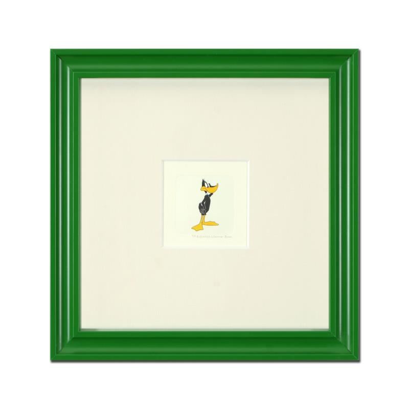 "Daffy Duck (Looking to the Side)" is a limited edition etching on paper with hand-tinted coloring from Warner Bros, numbered and dated 1999. This piece comes framed. Measures approx. 9" x 9" (with frame), 1" x 2" (image).